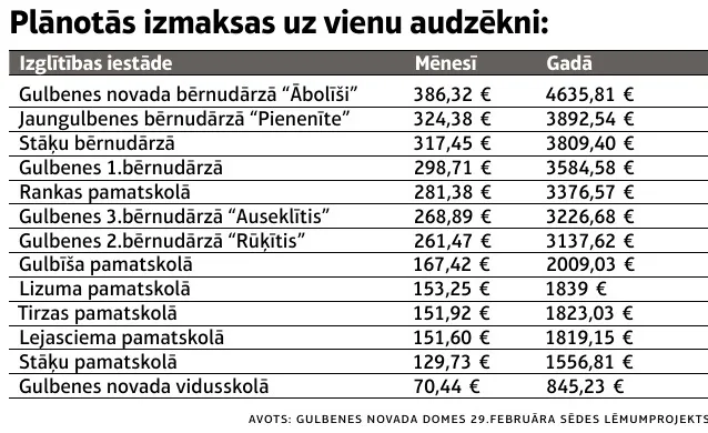 Pašvaldības ekonomiste Gundega Upīte teica, ka apmēram 50 000 eiro Gulbenes novada pašvaldība savstarpējos norēķinos par izglītojamajiem maksā vairāk, salīdzinot ar to, ko saņem pretī no citām pašvaldībām. Tas saistīts ar to, ka daudzi Gulbenes novada bērni un jaunieši izvēlas izglītoties Cesvainē vai Jaunpiebalgā. Cik tādu bērnu ir, precīzas informācijas nav, turklāt gada laikā izglītojamo skaits novadā mēdz mainīties. Tāpēc precīzi nepieciešamā finansējuma aprēķini nav iespējami, runājot par pašvaldības izglītības iestāžu izdevumiem un viena izglītojamā uzturēšanas izmaksām gan savā teritorijā, gan pašvaldību savstarpējos norēķinos 2024.gadā. Novada deputāti par šādu nepieciešamās naudas plūsmu nobalsoja novada domes 29.februāra sēdē.
