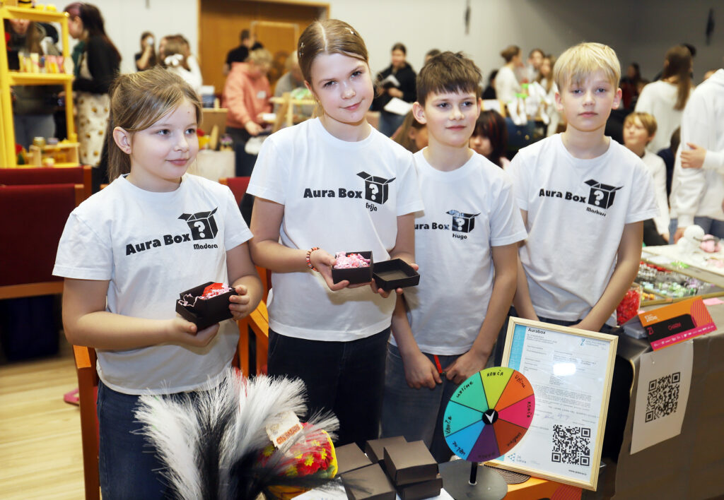 LIZUMA PAMATSKOLAS “Aurabox” komanda piedāvā dāvanu kastes ar pārsteigumu, kur katra lieta ir pašu gatavota, bet tās saturs līdz pēdējam brīdim paliek noslēpums. Foto: Gatis Bogdanovs