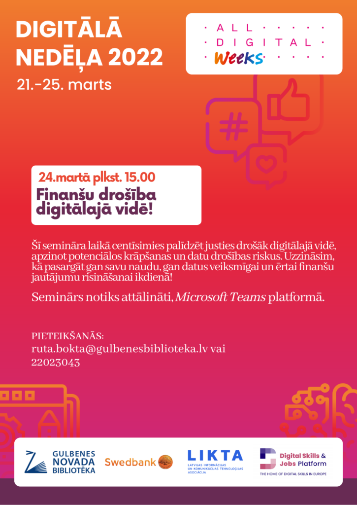 24.martā plkst. 15.00 – “Finanšu drošība digitālajā vidē”,