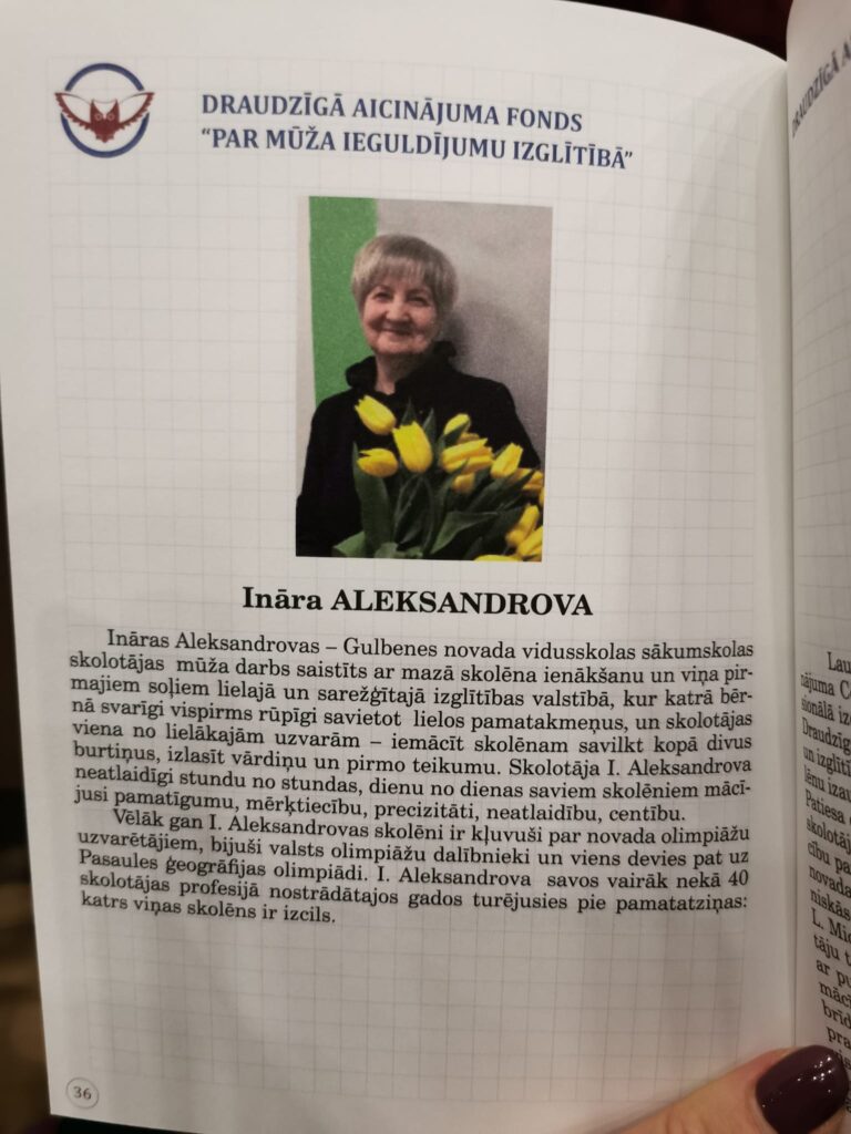 Gulbenes novada vidusskolas sākumskolas skolotājai Inārai Aleksandrovai ir piešķirta Draudzīgā aicinājuma fonda balva “Par mūža ieguldījumu izglītībā”. Šo balvu piešķir pedagogiem par ilglaicīgu un nozīmīgu profesionālo ieguldījumu izglītībā.