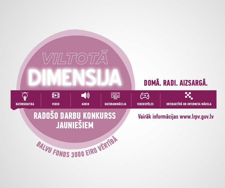 Patentu valde aicina gan studentus, kuri apgūst jauno mediju, audiovizuālās mākslas, un reklāmas nozari, gan šo jomu jaunos profesionāļus iesniegt darbus konkursā “Viltotā dimensija” un cīnīties par godalgu no 3000 eiro balvu fonda, informē Patentu valdes direktors Agris Batalauskis.