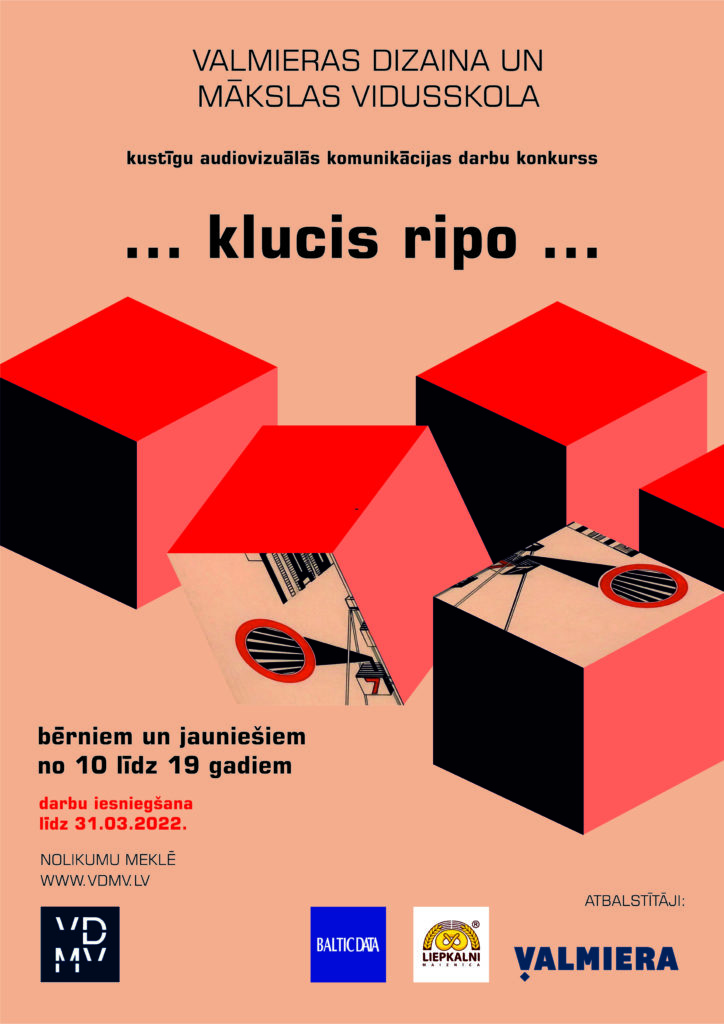 Valmieras Dizaina un mākslas vidusskola (VDMV) sadarbībā ar Valmieras novada pašvaldību aicina bērnus un jauniešus piedalīties audiovizuālās komunikācijas darbu konkursā “… klucis ripo…”. Par to informē Valmieras Dizaina un mākslas vidusskolas direktores vietniece metodiskajā darbā Sanita Bukava. Konkurss norisinās no 1. decembra līdz 31. martam. Tā uzdevums ir izveidot kustīgu oriģināldarbu audiovizuālajā komunikācijā, mūsdienās aktuālu tēmu atspoguļojot konstruktīvisma stilā, iedvesmu gūstot no Gustava Kluča daiļrades. Konkursa dalībnieki aicināti darbus veidot kā animāciju, videomateriālus, videografikas, audiovizuālas video grafikas u.c.