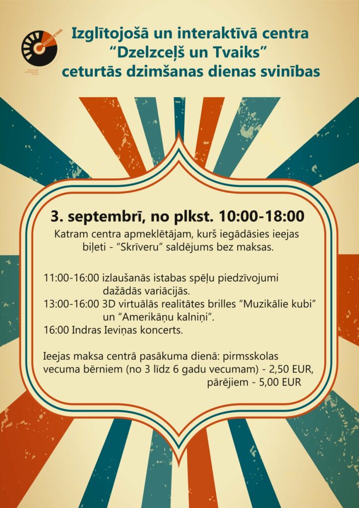 10:00-18:00 Izglītojošā un interaktīvā centra “Dzelzceļš un Tvaiks” 4. dzimšanas dienas svinības. Katram centra apmeklētājam, kurš iegādāsies ieejas biļeti – “Skrīveru” saldējums bez maksas.