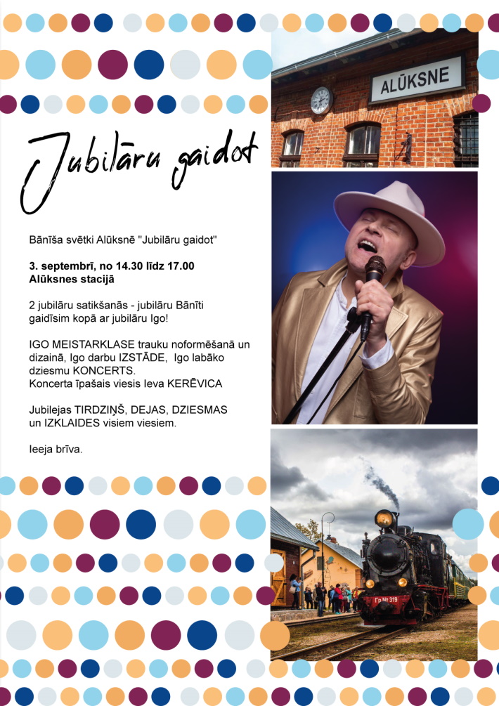 Pasākums “Jubilāru gaidot” kopā ar izcilo mūziķi un mākslinieku IGO -meistarklase trauku noformēšanā un dizainā, Igo darbu izstāde un labāko dziesmu koncerts (koncerta īpašais viesis IEVA KERĒVICA). Jubilejas tirdziņš, dejas, dziesmas un izklaides visiem viesiem.