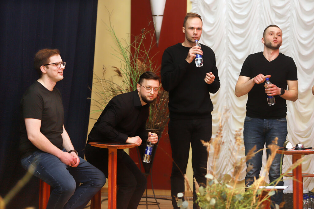 “Manuprāt, daudzi apmeklētāji pat īsti neapjauta, kas šoreiz viņus sagaida, jo visi jau bija pieraduši pie ēverģēlībām daudzu gadu garumā, bet šoreiz bija pavisam cits redzējums. Mūs uzrunāja Gulbenes novada kultūras centra vadītāja Sarmīte Zdanovska, un, tā kā improvizācijas teātris vienmēr ir gatavs, mēs arī piekritām. Šoreiz uz izrādi savācās astoņi aktieri – gan vecie un ilgspēlējošie, gan jaunie. Vecie no agrākie laikiem, bet klāt nāca jaunie no improvizācijas, kas savulaik notika jauniešu centrā “Bāze”. “Kovida” laiks gan visu to nedaudz izjauca, bet tagad atkal mēs sanākam kopā un uzspēlējam gan tur, kur mūs aicina, gan kultūrvietā “Lokāls”, gan vienkārši tāpat, kad pašiem gribas. Mums ir pievienojusies arī neformāla meiteņu grupa, kura, kā es smejos, tajos brīžos atpūšas no bērniem un mājas darbiem, un tā mēs kopā darbojamies aptuveni pusotru gadu un esam neatņemama “Lokāla” sastāvdaļa,” teica A.Birzniece.
