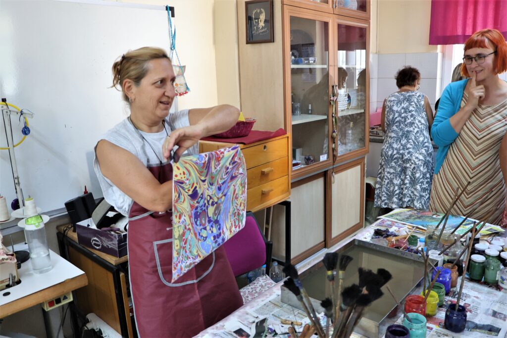 “Tāpat aicinām ielūkoties virtuālajā izstādē, lai aplūkotu, kādas prasmes projektā iesaistītie pieaugušo izglītotāji ir apguvuši mācību mobilitāšu laikā Turcijā, Igaunijā un Latvijā (“https://my-amaze.net/erasmus”)! Projekta laikā kopumā mācību mobilitātēs Latvijā, Turcijā un Igaunijā piedalījās 26 pieaugušo izglītotāji, apgūstot dažādas inovatīvas un tradicionālas mākslas, amatniecības un lietišķās mākslas prasmes, kā, piemēram, tradicionālā turku ebru māksla un flīžu apgleznošana, pīņu pīšana, porcelāna dekorēšana dekolu tehnikā, skanogrāfija, mandalu punktošana, māla trauku izgatavošana un cits. Vairākas no tehnikām ir pārņemtas organizāciju darbā, radot jaunu mācību piedāvājumu,” stāsta Gulbenes novada vēstures un mākslas muzeja projektu vadītāja Ilze Vanaga.