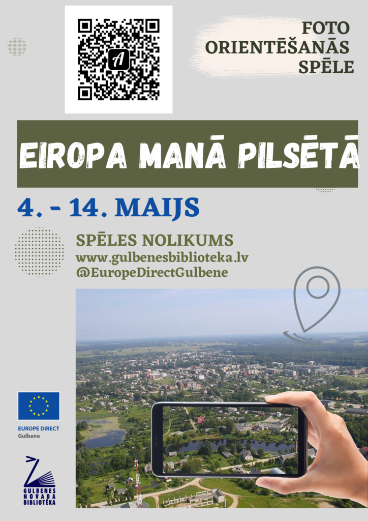Sakarā ar Eiropas dienu, ko svinam 9.maijā, “Europe Direct” centrs Gulbenē sadarbībā ar Gulbenes novada bibliotēku organizē foto orientēšanās spēli gulbeniešiem un viesiem “Eiropa manā pilsētā”. Gan individuālie dalībnieki, gan komandas līdz 14.maijam ir aicināti apmeklēt objektus Gulbenē, kuru izveidē vai atjaunošanā ir izmantots Eiropas Savienības finansējums, tajā skaitā arī Gulbenes novada pašvaldības līdzfinansētie projekti. Vairāk informācijas – “Gulbenesbiblioteka.lv”, bibliotēkas “Facebook” kontā un “@Europedirectgulbene”.