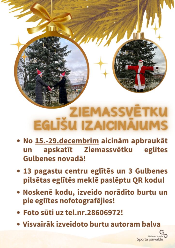 Gulbenes novada Sporta pārvalde aicina izbaudīt laiku, braukt un apskatīt Ziemassvētku eglītes Gulbenes novadā. Lai būtu interesantāk, Sporta pārvalde no 15. līdz 29.decembrim ikvienu interesentu aicina ne tikai apskatīt Ziemassvētku eglītes Gulbenes novadā, bet arī piedalīties izaicinājumā. Trīspadsmit pagastu centru eglītēs un trīs Gulbenes pilsētas eglēs, kas atrodas centrālajā skvērā, Spārītes parkā un pie dzelzceļa stacijas, ir jāsameklē paslēpts QR kods.