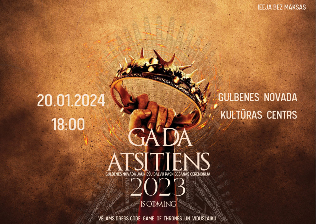 “Arī šogad sanāksim kopā, lai svinētu mūsu novada jauniešu lielās un mazās uzvaras un apsveiktu mūsu pašu jauniešus balvu pasniegšanas ceremonijā “Gada atsitiens 2023”. Aicinām jūs kopā ar mums sveikt nominantus un uzvarētājus 20.janvārī pulksten 18.00 Gulbenes novada kultūras centrā,” saka Gulbenes novada jauniešu centra “Bāze” pārstāve Džesija Olekša.