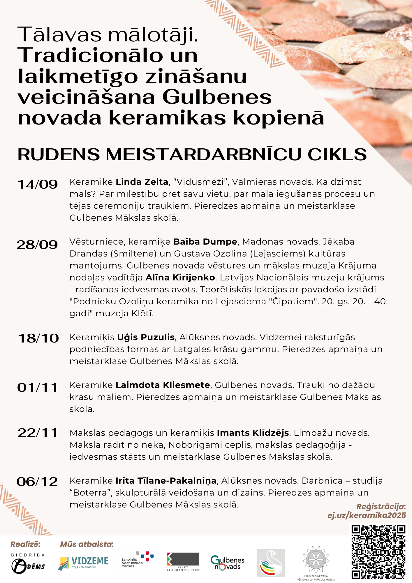 Dalībnieku skaits meistardarbnīcās ir ierobežots. Reģistrācijas saite: “ej.uz/keramika2025”.