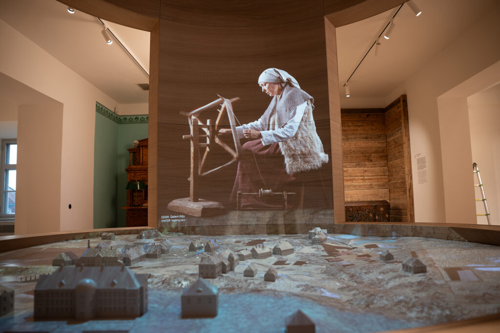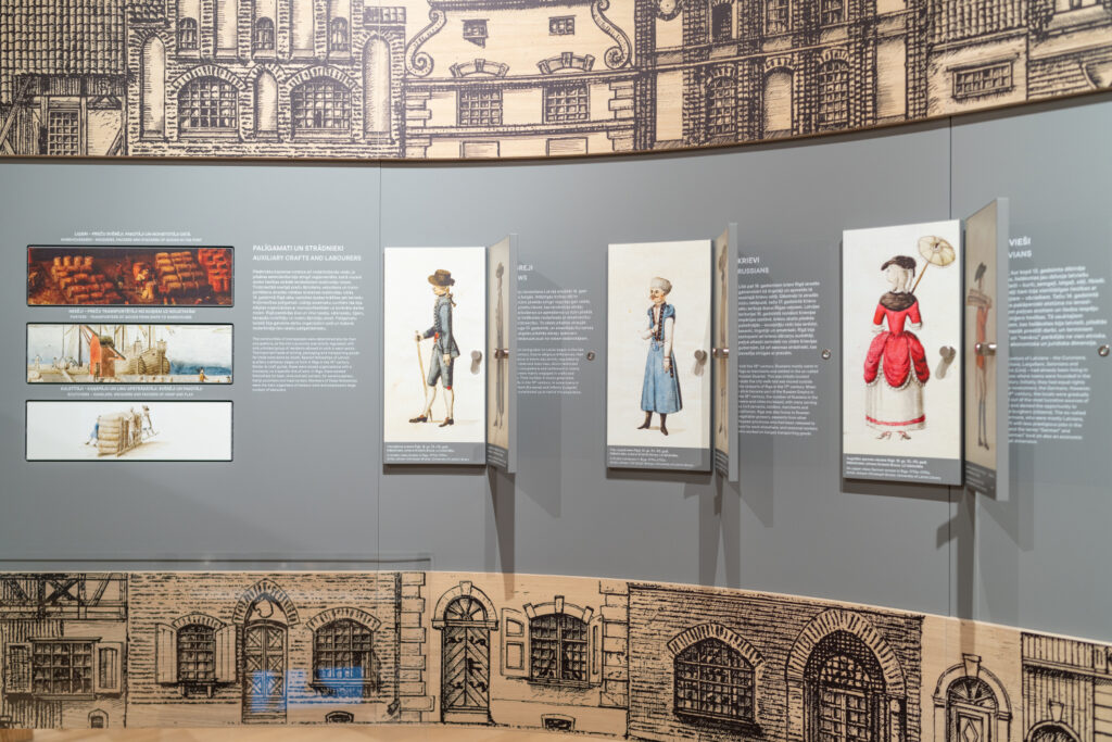 Par viduslaiku Rietumeiropai raksturīgā pilsētas modeļa un dzīvesveida iesakņošanos Latvijas teritorijā Livonijas laikā stāstīts sadaļā “Pilsētas mūris vieno” – tajā pilsēta rādīta gan kā īpaši veidota telpa, gan arī kopiena, kas aizsargā savas intereses, caur tradīcijām uztur noteiktu sociālo kārtību.