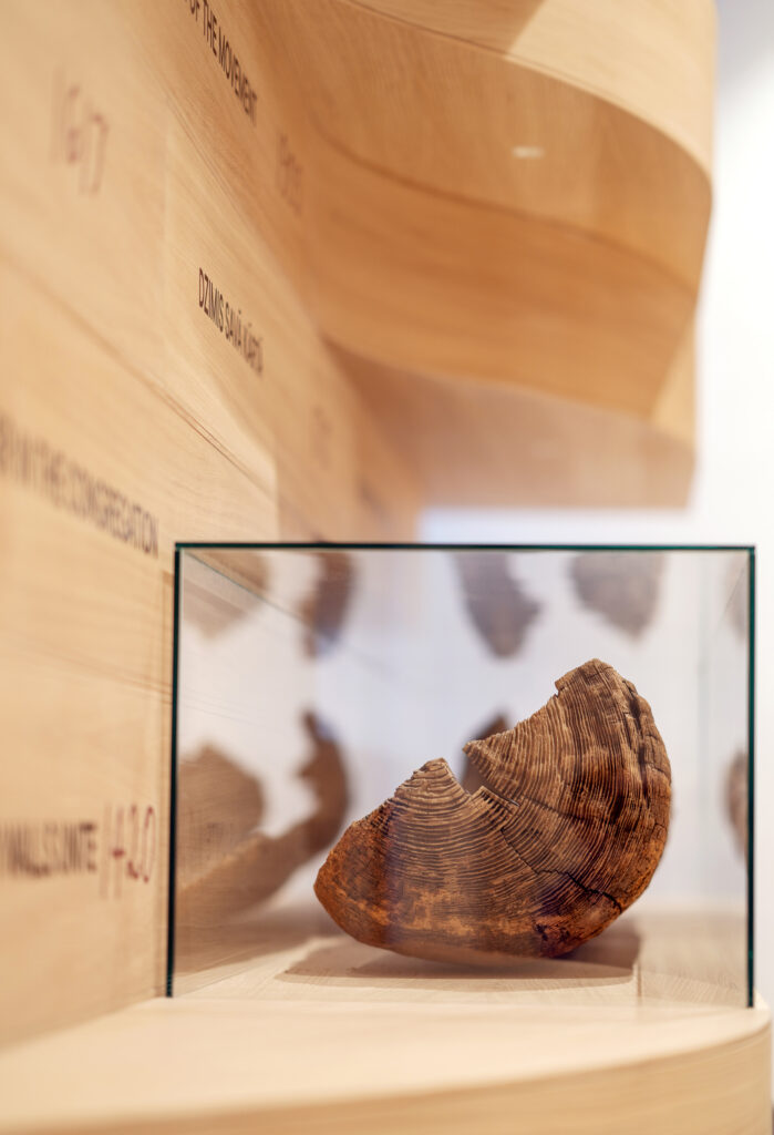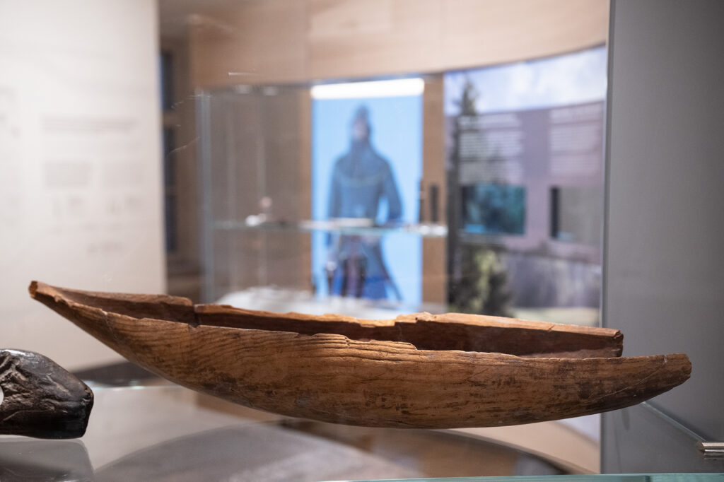 Stāstījumā apmeklētāju ievada ūdens viļņojuma simbolisks attēlojums un sena vienkoča laiva, simbolizējot gan mūžīgo esības plūdumu, gan pēctecību un turpinājumu.