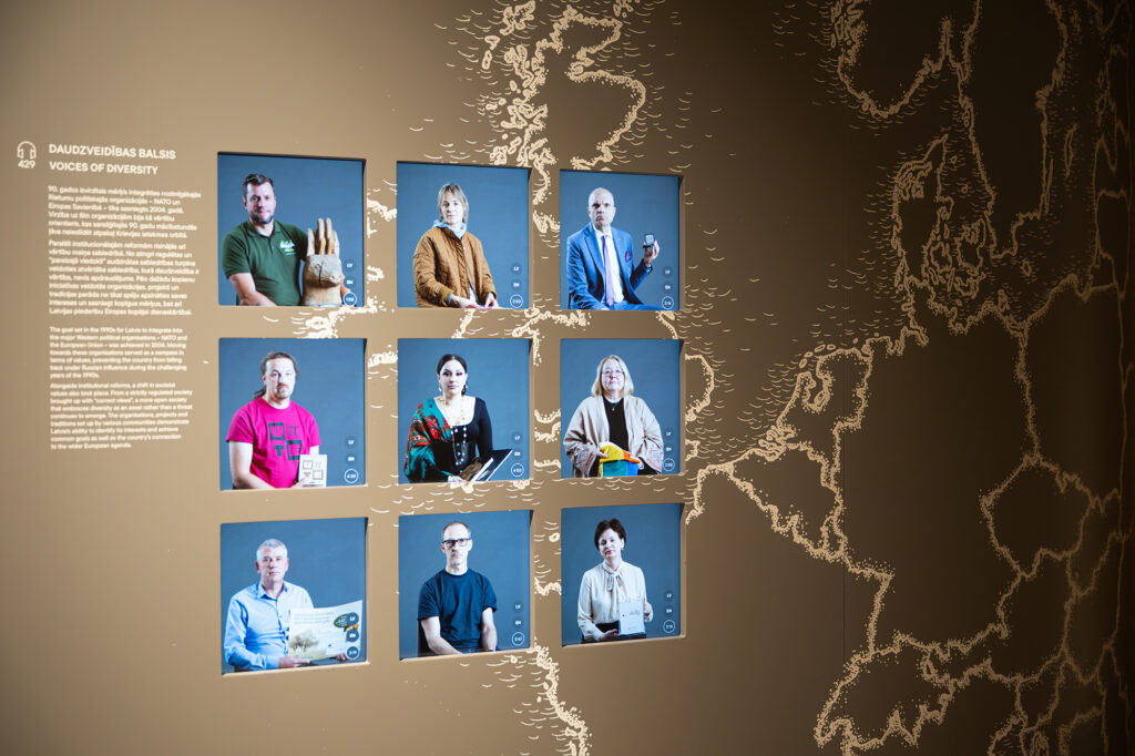 Ekspozīcijas noslēdzošā daļa “Atgriešanās Eiropā” vēsta par Latvijas valstiskuma atjaunošanu, tiekšanos atkal piederētdemokrātiskajai Eiropai un Rietumu pasaulei. Ceļš uz piederību šai vērtību kopienai vedis gan caur Atmodas laika cerībām un ideāliem, gan deviņdesmito gadu sociālekonomiskajiem un politiskajiem satricinājumiem.
