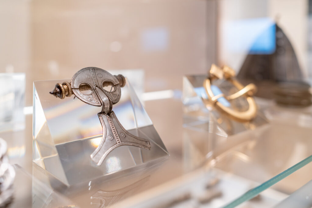 Sadaļa “Pilskalnu ļaudis” rāda pilskalnus un to iedzīvotājus kā dzelzs laikmeta kopienas dzīves centru. Šī laikmeta apģērbs, rotas, dažādi prestiža un statusa priekšmeti, arī apbedīšanas tradīcijas atspoguļo gan cilvēka piederību kādai no etniskajām vai kultūras grupām, gan arī viņa vietu sociālajā un varas hierarhijā.