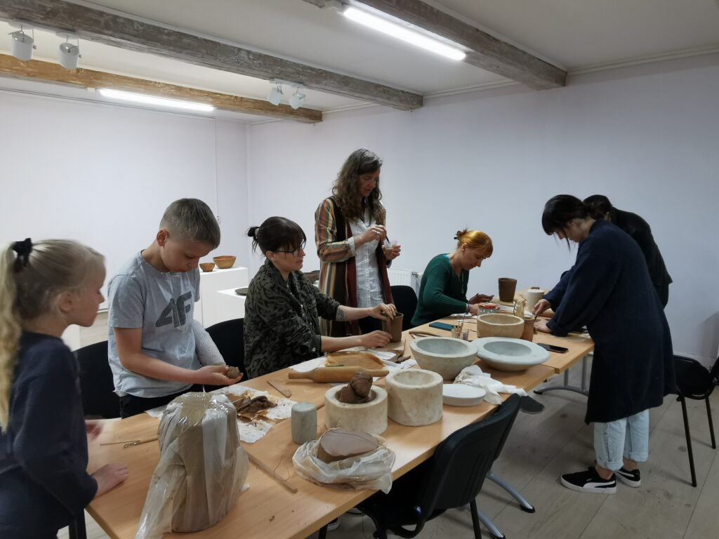 Izstādes noslēgumā ikvienam bija iespēja piedalīties Iritas keramikas meistarklasē, kurā katrs no dalībniekiem pagatavoja krūzi un bļodu. Jaunākie dalībnieki pagatavoja arī kādus sīkplastikas darbiņus. Tagad tikai jāgaida, kad darbi tiks izdedzināti un dalībnieki saņems savus īpašos traukus.