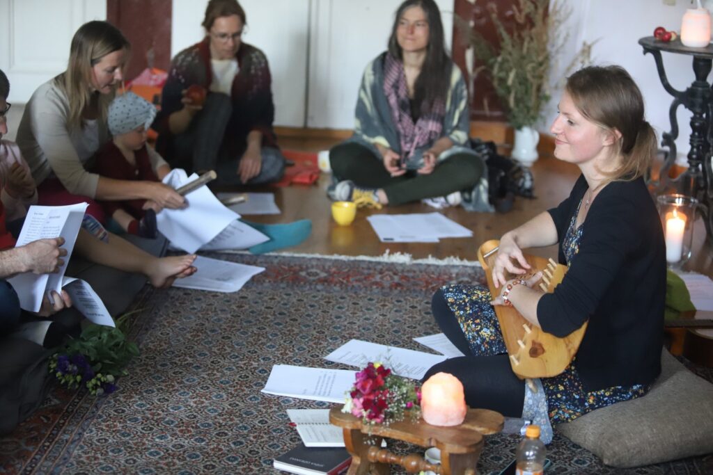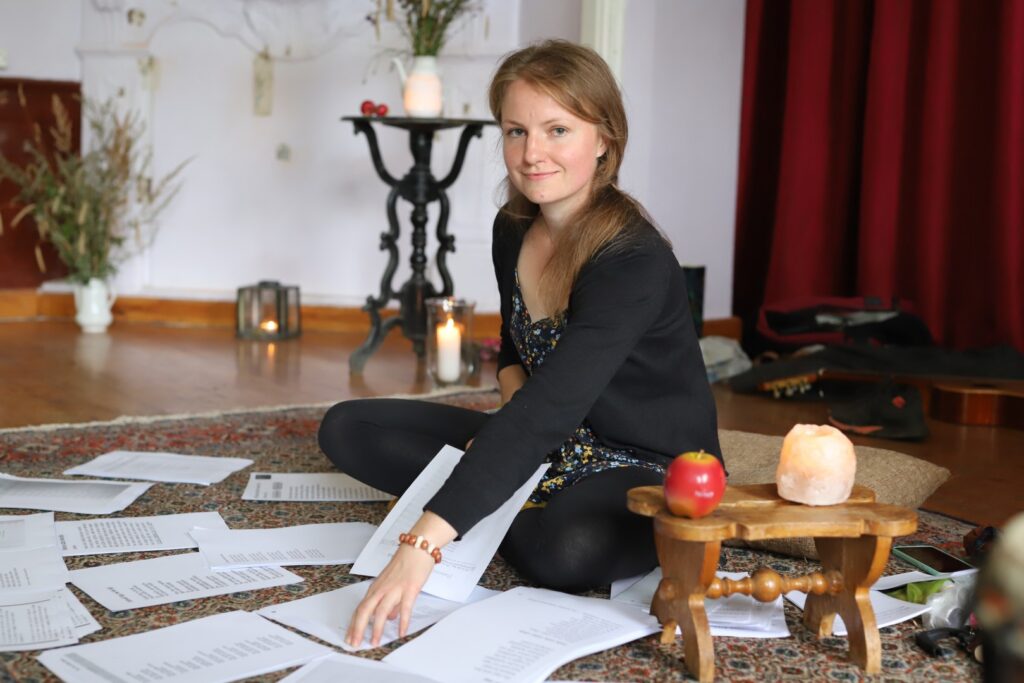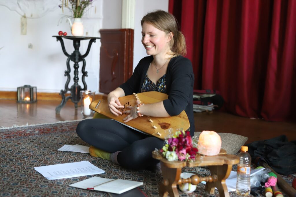 Viņa uzsver, ka atsaukusies nākt uz kopīgu sadziedāšanos un paņēmusi līdzi arī tos mūzikas instrumentus, kurus viņai pašai patīk spēlēt.