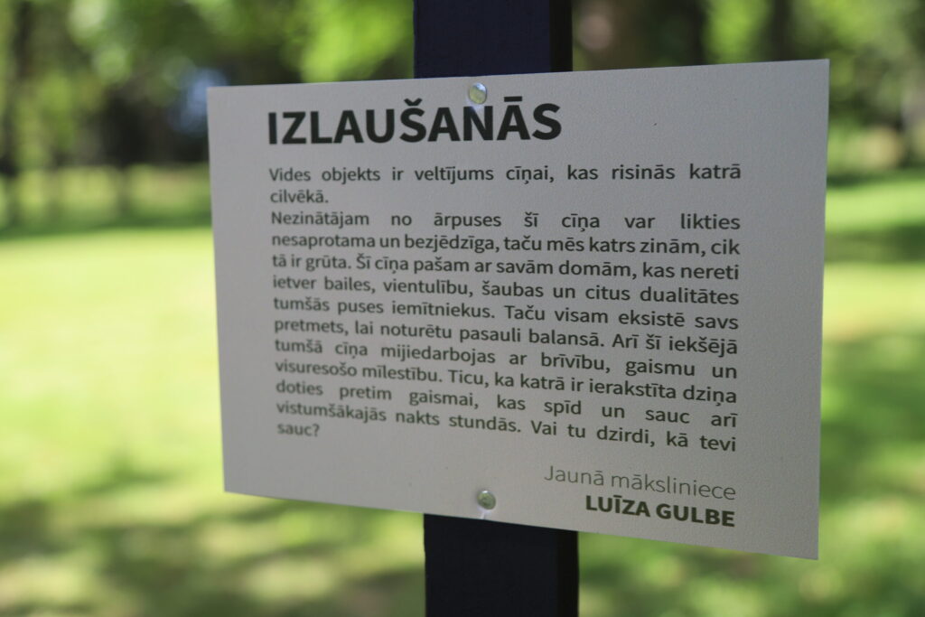 Tagad Stāmerienas parka apmeklētājiem atliek vērot vides objektu mākslu. Visticamāk, katrs to izpratīs pa savam, taču pie katra no objektiem ir apraksts par to, ko savā mākslas darbā sabiedrībai gribējis teikt pats mākslinieks. Šobrīd tiek meklēts tehniskais risinājums, lai arī audio skaidrojums būtu klausāms jau tuvākajā nākotnē.