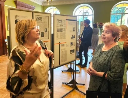 IZSTĀDE par laikraksta “Ziemeļlatvija” simtgadi ir skatāma Valkas kultūras centrā. Tai piederīga ir ne tikai šīs avīzes galvenā redaktore Ingūna Johansone, bet arī galgausniete Marīte Dzene (no labās), kura savulaik bijusi “Ziemeļlatvijas” žurnāliste. FOTO: GINTA ALBERTE