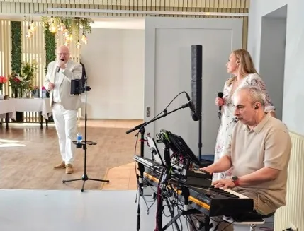 SIRDĪ arvien vēl žurnālists un dziesminieks, bet praksē – politiķis. Kādreizējas laikraksta “Ziemeļlatvija” redaktors Vents Armands Krauklis sveica bijušos kolēģus ar dziesmām. Viņš ir jaunievēlētās Valkas novada domes deputāts. FOTO: LĪGA ORLEANA