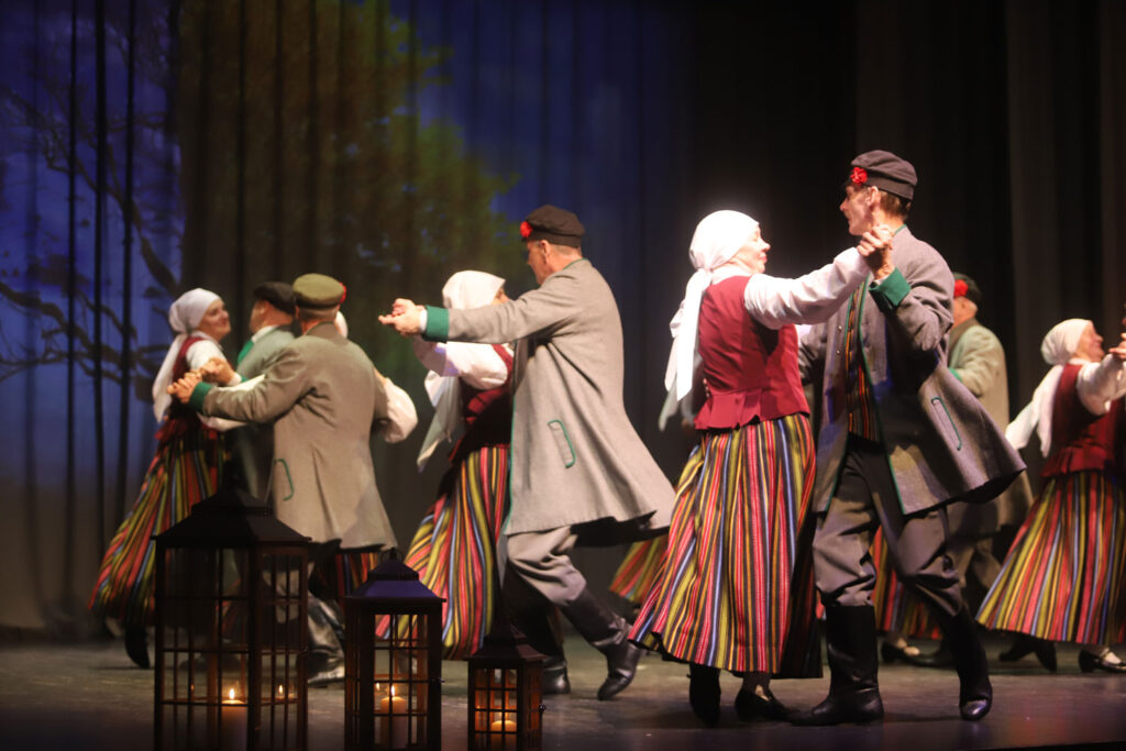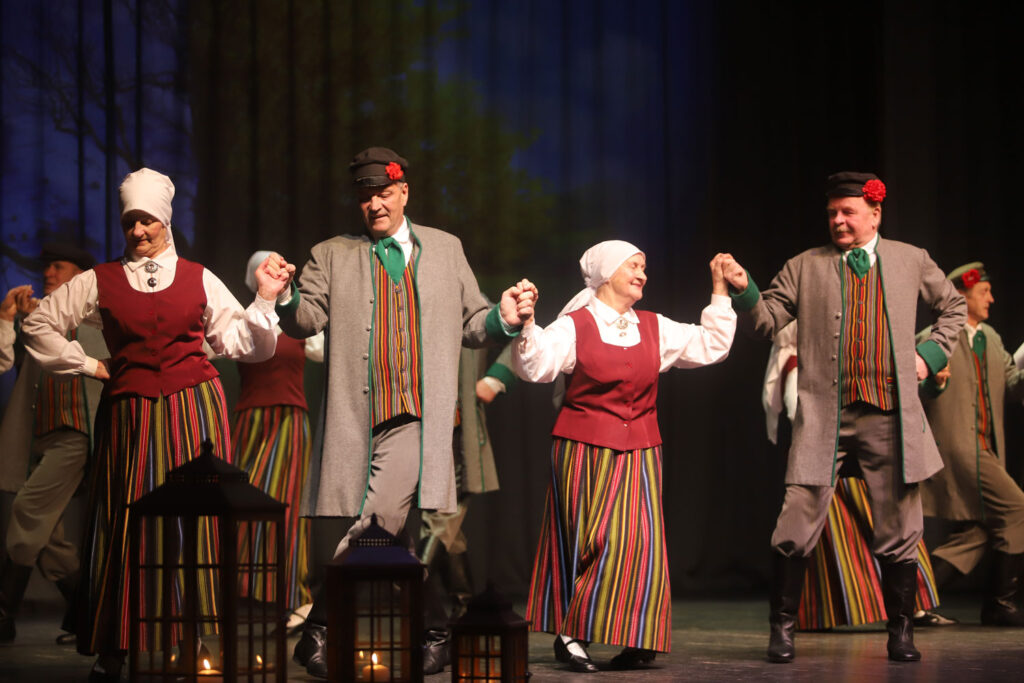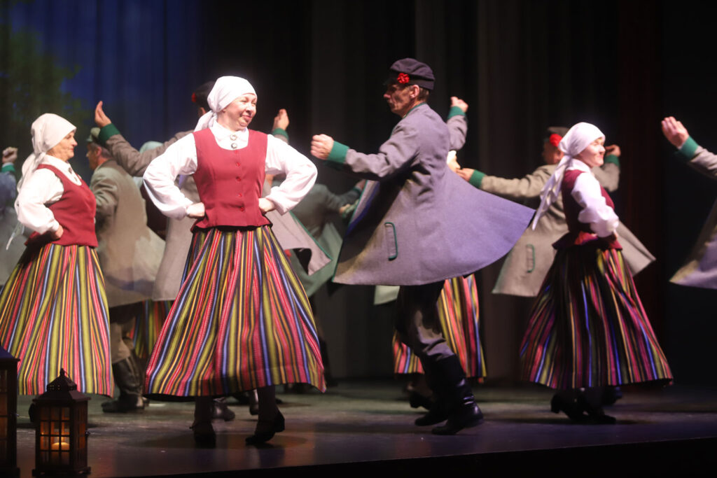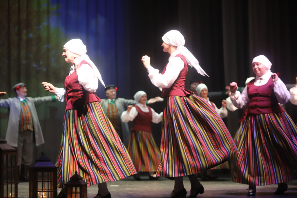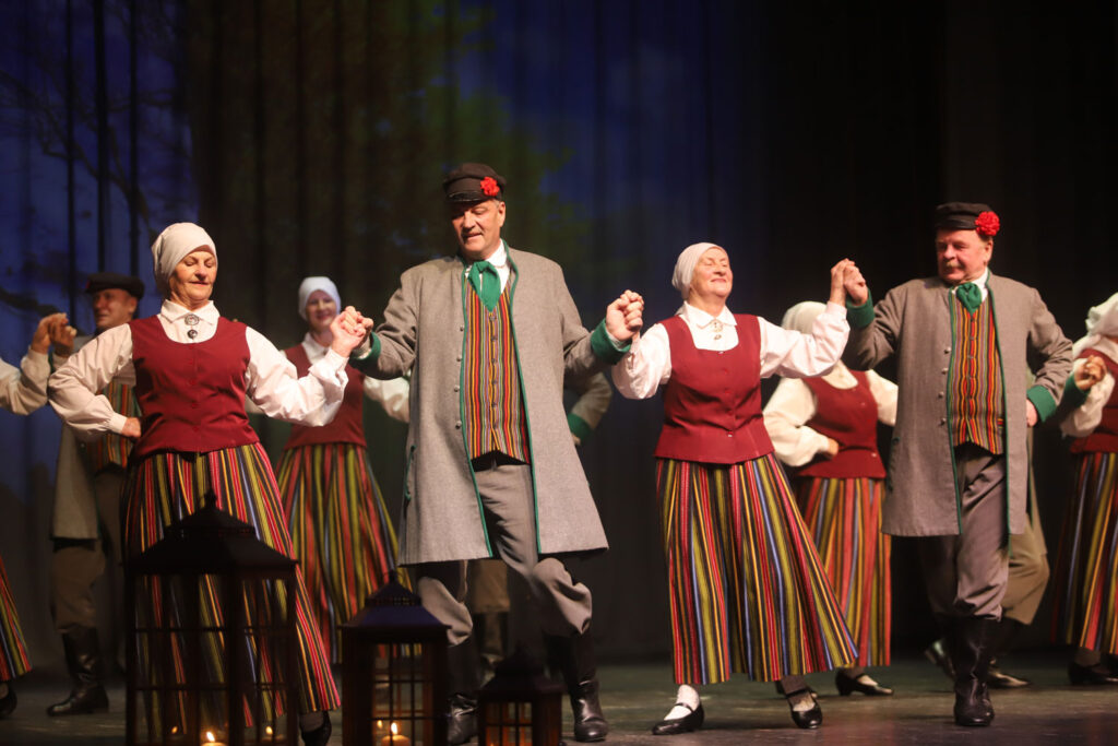 Gulbenes novada kultūras centra senioru tautisko deju kolektīvs “Vērdiņš” kā vienmēr kopā ar saviem deju draugiem un skatītājiem. Foto: Gatis Bogdanovs