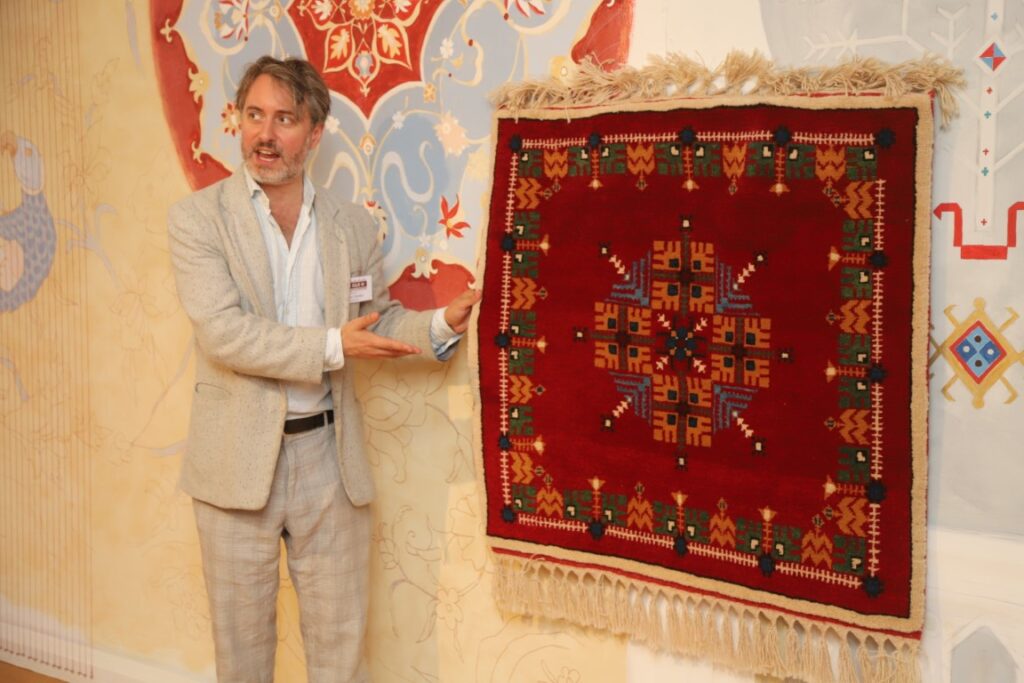ven” līdzdirektors Viljams Danbars teica, ka ekspozīcijas apmeklētāji droši var pieskarties šim paklājam un aptaustīt to, jo darinājums ir biezs un izturīgs. Paklājs ir tapis nemateriālā mantojuma revitalizācijas projektā. “Latvieša dizains šajā paklājā ir apvienots ar gruzīnu aušanas tehniku,” teica V.Danbars.