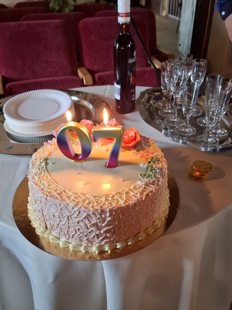 Ligita apgalvo, ka vecums nav šķērslis un tagad ir labākie gadi. Par tiem jubilāre aicina pacelt šampanieša glāzes un, novēlot viņai laimi, izdzert tās. “Viss, ko vēlas, vēl tikai būs,” tic jubilāre. To apliecina torte, uz kuras ir “07”.
