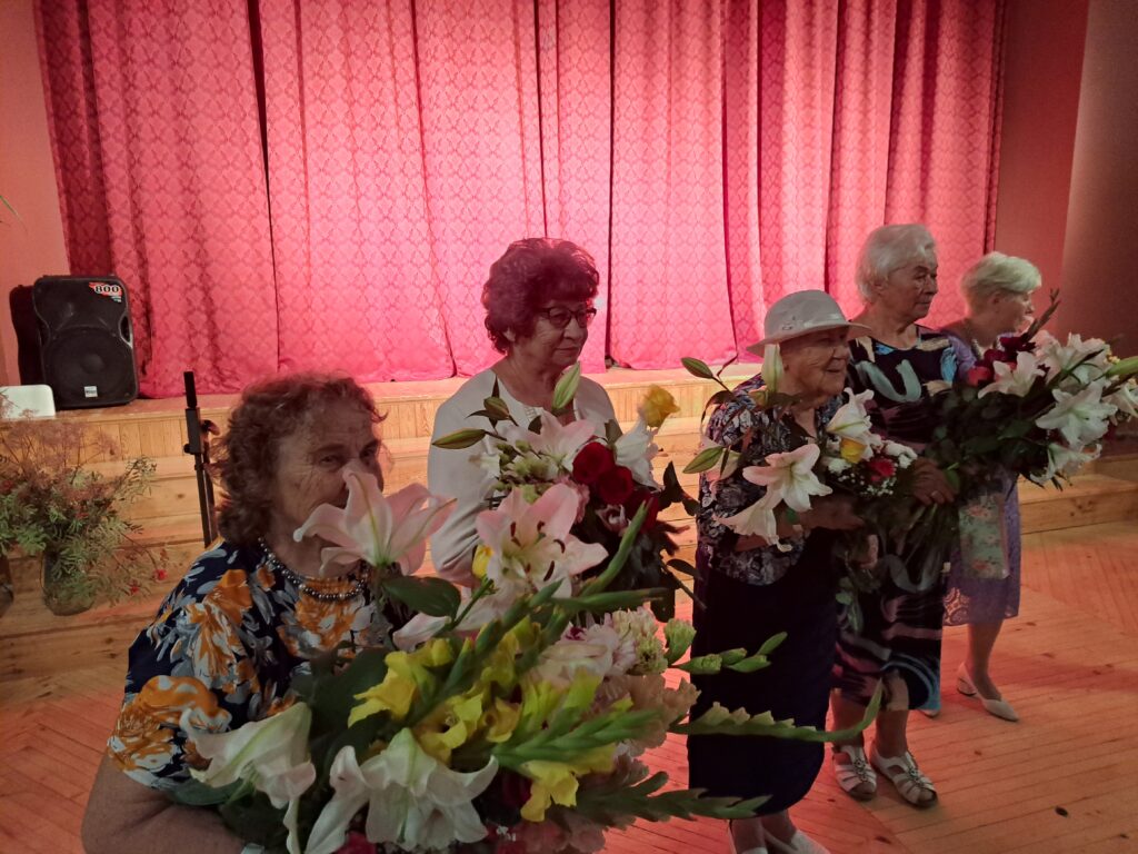 Ziedu klēpji kā katru tikšanās reizi – “zelta fondam”: skolotājām Austrai Karolei, Laimai Gavarei, Inārai Muižniecei un Intai Mūrniecei, godinātas arī Galgauskas skolas direktores Ingrīda Sebre un Iveta Dzene. Foto: Ginta Alberte.
