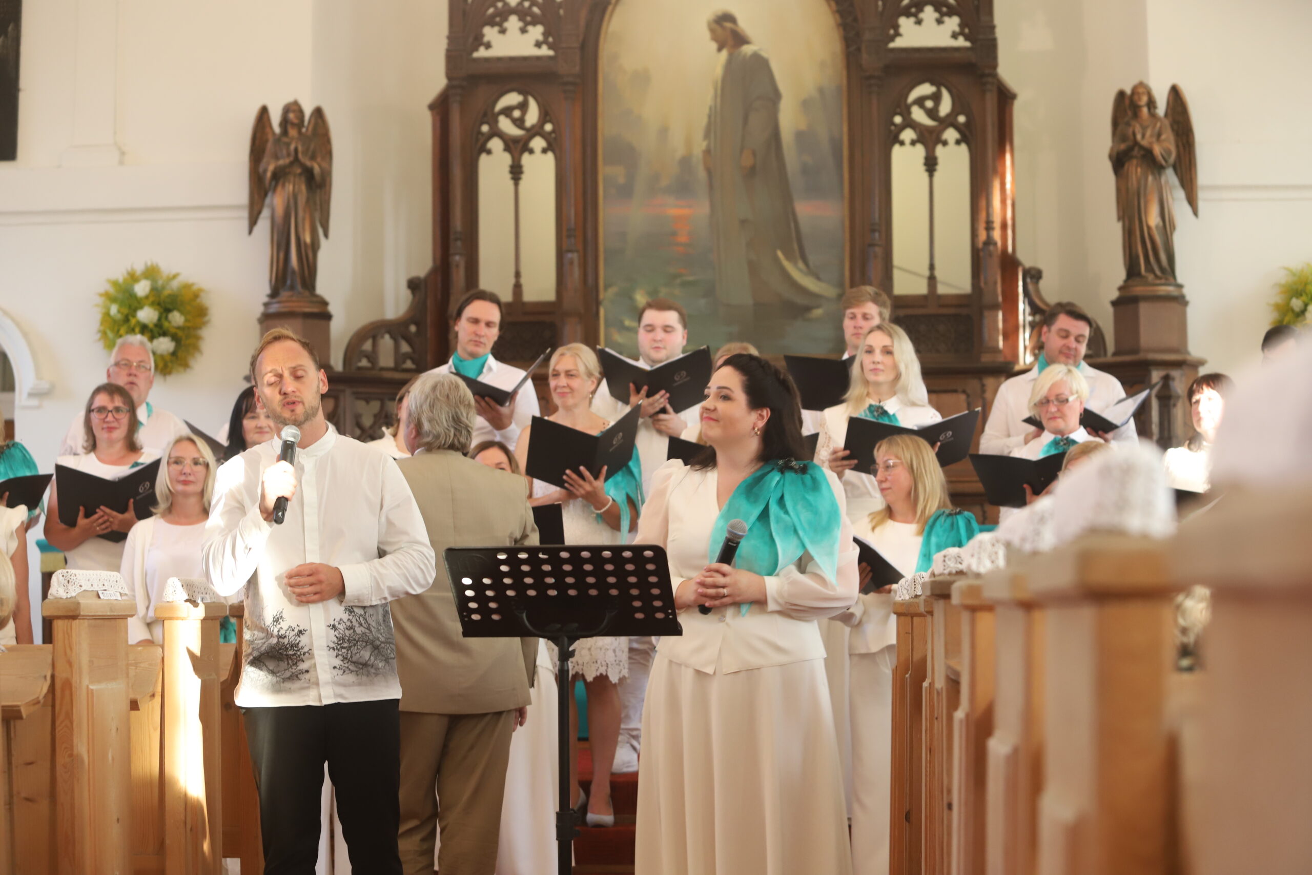 Koncerts “Zem baltā gulbja spārna” bija kora dāvana visiem gulbeniešiem un viesiem. Pārpildītajā Gulbenes luterāņu baznīcā stāstu par balto gulbi, kurš lido virs pilsētas, un stāstu par cilvēkiem, vietām un notikumiem izstāstīja “Harmonija”, kora viesi un draugi.