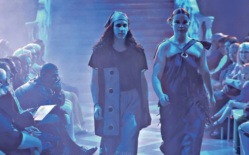 Parādē jaunieši demonstrēja savu tērpu kolekciju “Diennakts” (Diena. Nakts. Diena plus nakts ir diennakts).