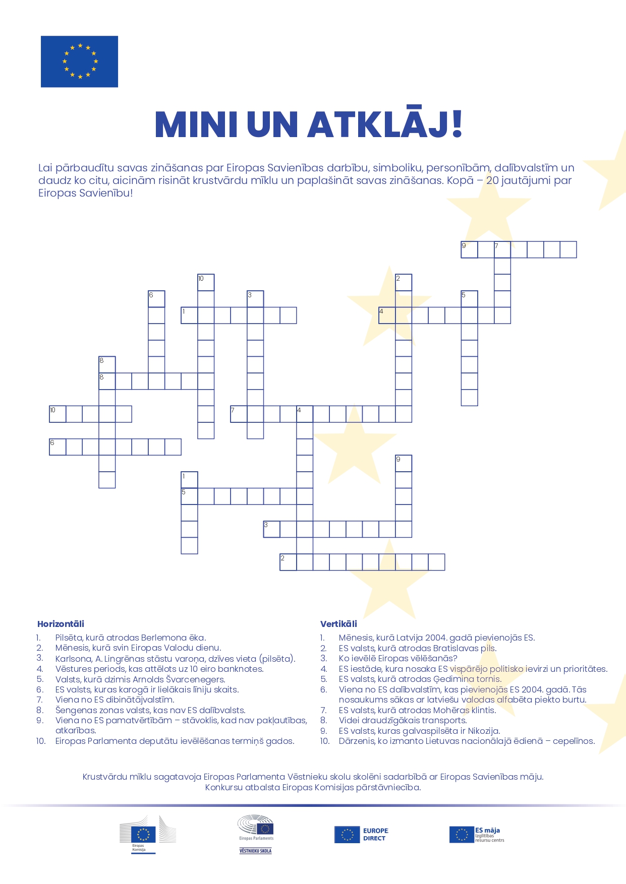 Krustvārdu mīklas saturu izstrādāja Eiropas Savienības māja un Eiropas Parlamenta Vēstnieku skolu skolēni.