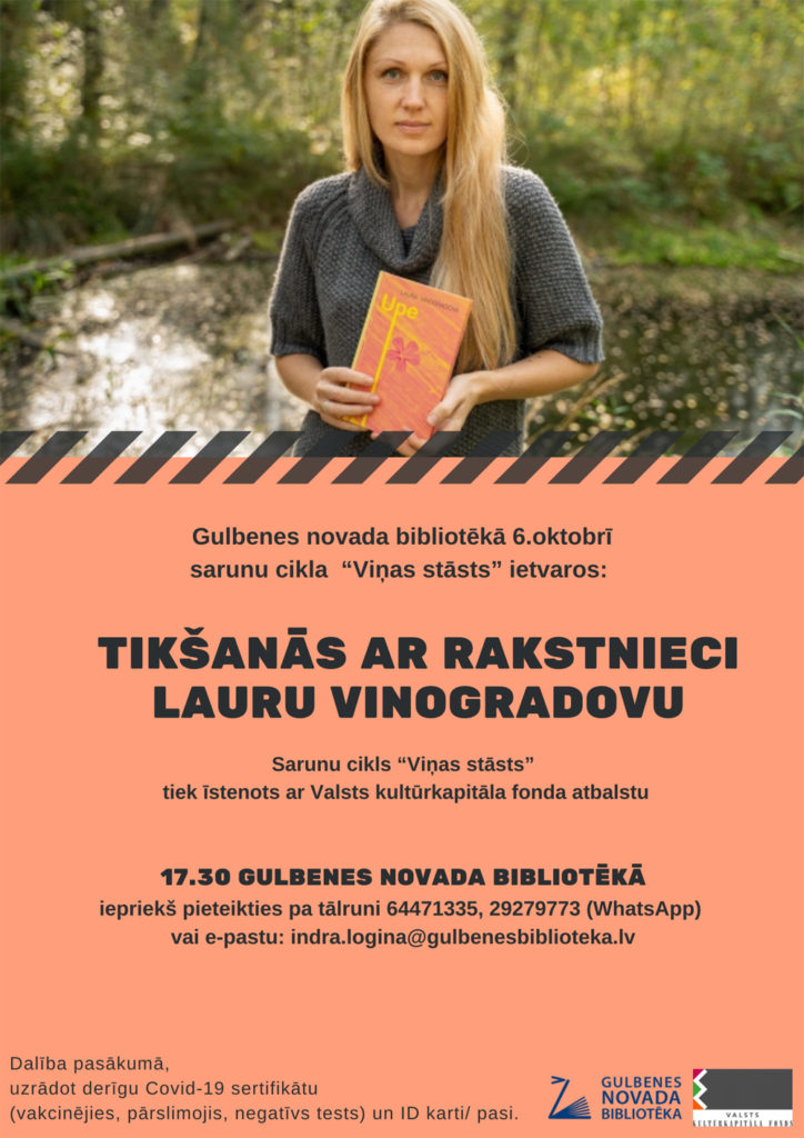 6.oktobrī pulksten 17.30 Gulbenes novada bibliotēkā būs tikšanās ar rakstnieci Lauru Vinogradovu sarunu ciklā “Viņas stāsts”.