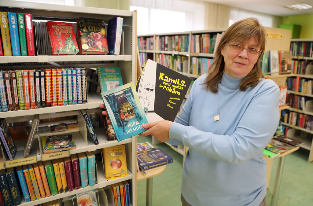 “Īpaši vēlos izcelt grāmatu par zēnu Kamilu, kurš ir neredzīgs bērns un dzīvo lieliskā ģimenē. Prieks, ka arī lasītājiem šī grāmata patīk, kā arī vecāki nāk un saka, ka tik labestīgu, sirsnīgu grāmatu sen nav lasījuši. Pirmajā vietā ir grāmata “Meitene zilā kleitiņā”, kuru visvairāk lasa 5. un 6. klases jaunieši, jo grāmata ir viņu iecienītajā izmērā un biezumā. Pie mums bieži atnāk skolēni un prasa grāmatu, kurā ir 100 vai līdz 150 lapaspusēm. Tad nu šī grāmata ir “iekritusi” šajā plauktiņā. Kopumā šajā “top 10” sarakstā ir četras “Bērnu žūrijas” grāmatas, un tas ir diezgan loģiski, jo šīs grāmatas bieži izvēlas, un vēl – grāmatas atrodas atsevišķā plauktā un ir saliktas pēc vecumposmiem,” stāsta S.Lībere.