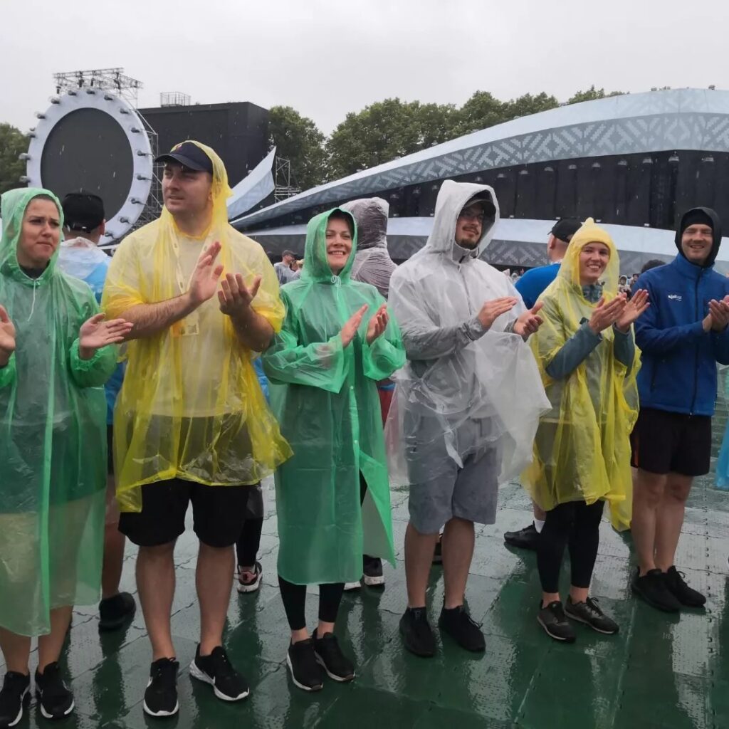 Tāpat Inese Stoklosa, kura dzied “Harmonijā”, stāsta, ka rindas Mežaparkā uz ēšanu bija garas. “Kādu stundu stāvējām, bet tikām. Viena daļa gan neizturēja, devās uz blakus esošajām kafejnīcām meklēt ēdienu. Bet skolā mūs ēdina labi,” saka Inese. Viņa arī stāsta, ka pirmajā mēģinājumu dienā izmirkuši, bija lietus, slapjas kājas, mitrs apģērbs un nebija iespējas pārģērbties līdz pat vakaram. “Tā bija vistrakākā diena, un reāli daži saaukstējās – sāka sāpēt kakls. Jauki, ka mums ir medmāsa 24 stundas diennaktī. Viņa mums ļoti palīdz un ārstē. Patiecoties viņai, esam ierindā un varam dziedāt ar pilnu jaudu. Bet kopumā ir super! Protams, bija daži “kreņķi”, bet tie visi atrisinājās,” stāsta Inese.
