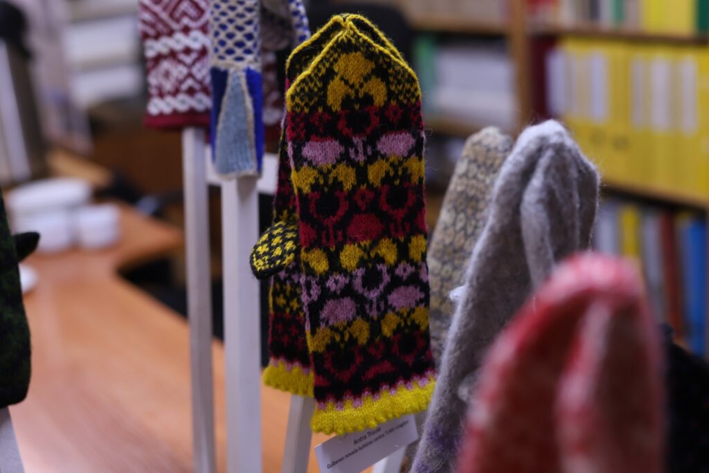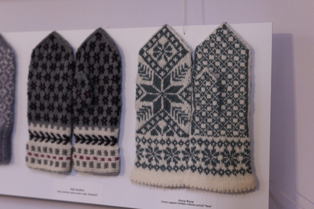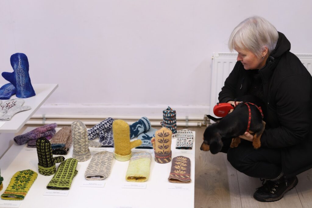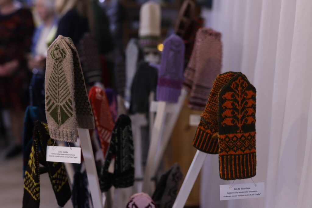 Gulbenes Tautas lietišķās mākslas studijas “Sagša” dalībniece un Stradu pagasta interešu kluba “Rasa” vadītāja Ligita Lapsa par izstādē redzamajiem cimdiem “Dzirkstelei” saka: “Raibi, koši un skaisti!” Viņas rakstainais dubultcimds, kas vēl ir darba procesā, arī ir skatāms izstādē.