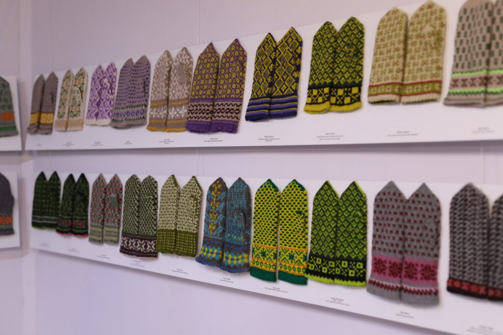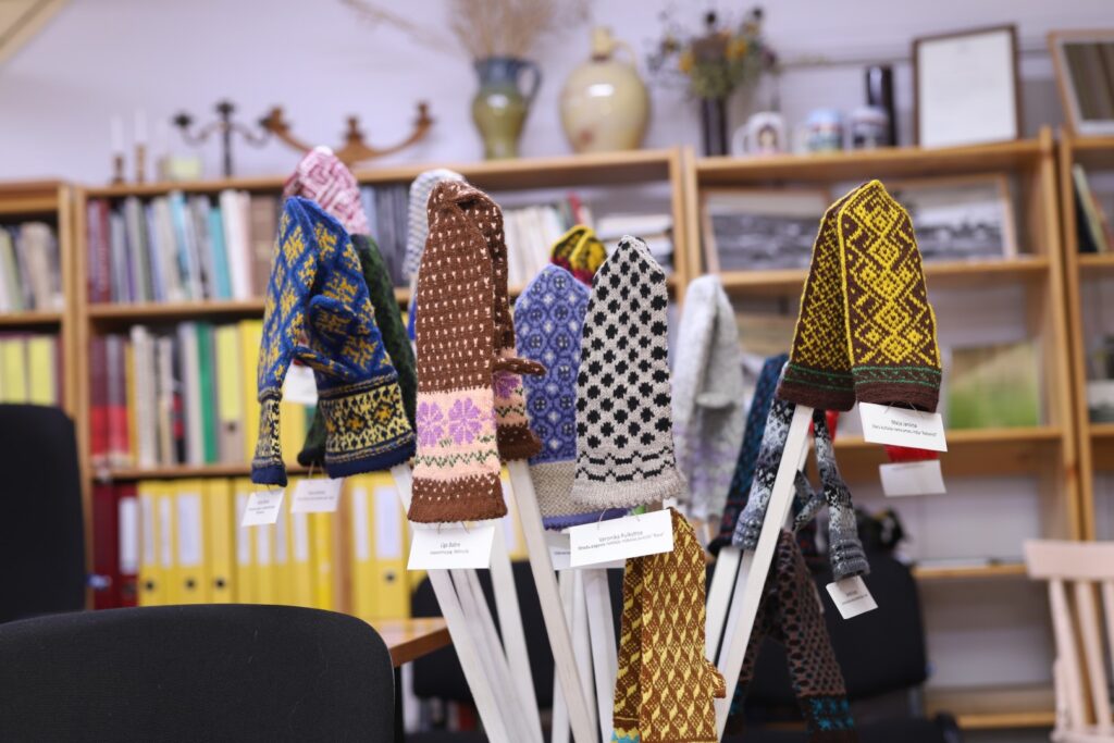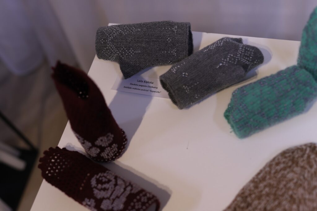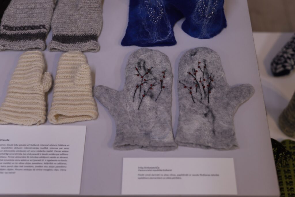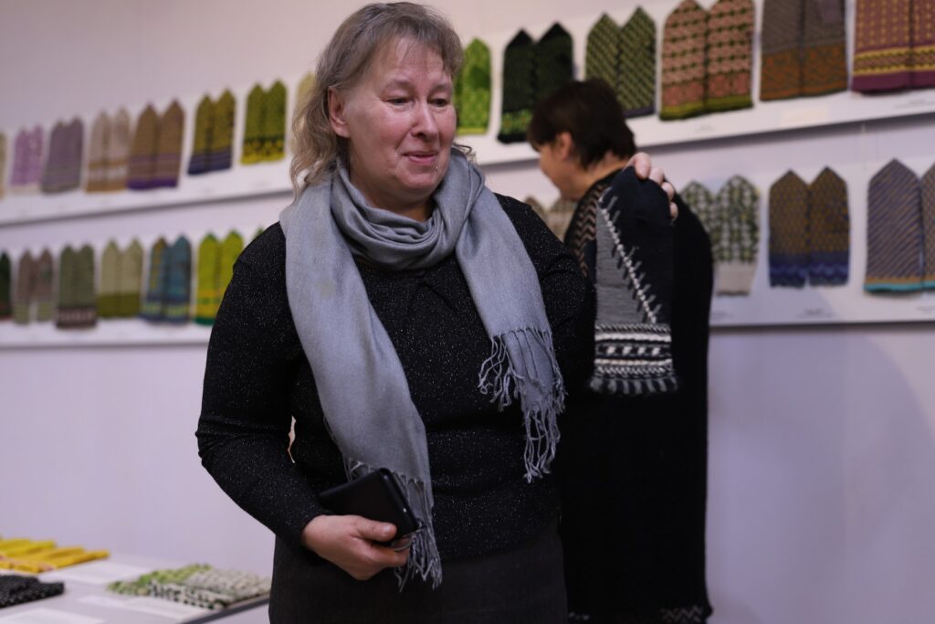 Gulbenes Tautas lietišķās mākslas studijas “Sagša” dalībniece un Stradu pagasta interešu kluba “Rasa” vadītāja Ligita Lapsa par izstādē redzamajiem cimdiem “Dzirkstelei” saka: “Raibi, koši un skaisti!” Viņas rakstainais dubultcimds, kas vēl ir darba procesā, arī ir skatāms izstādē.