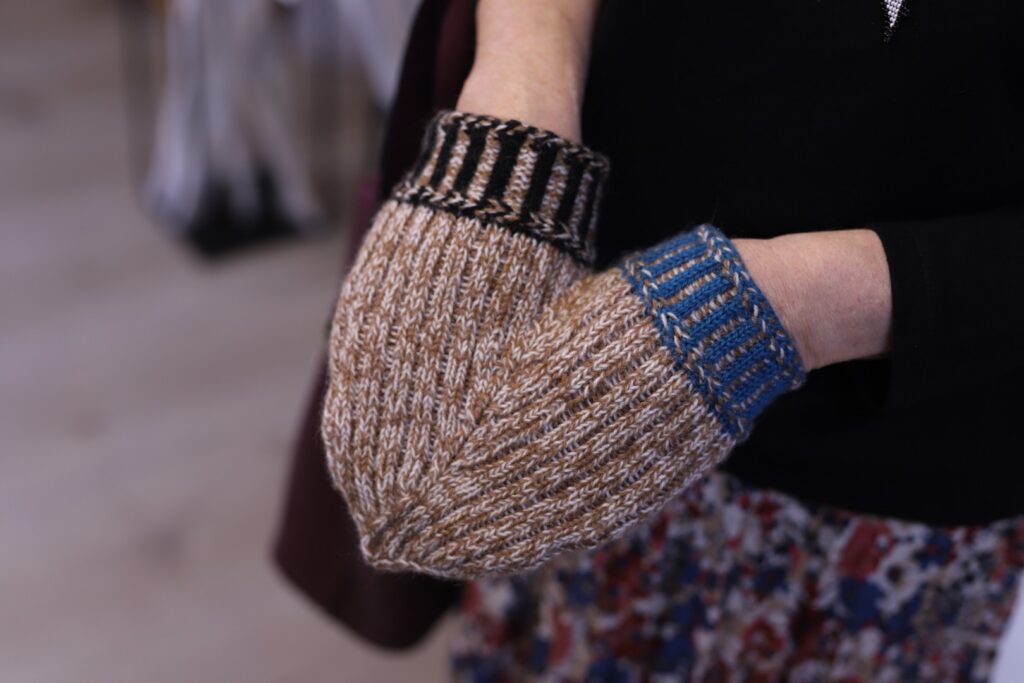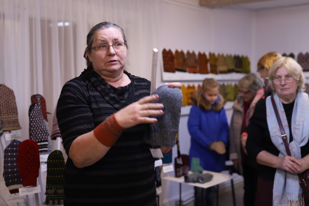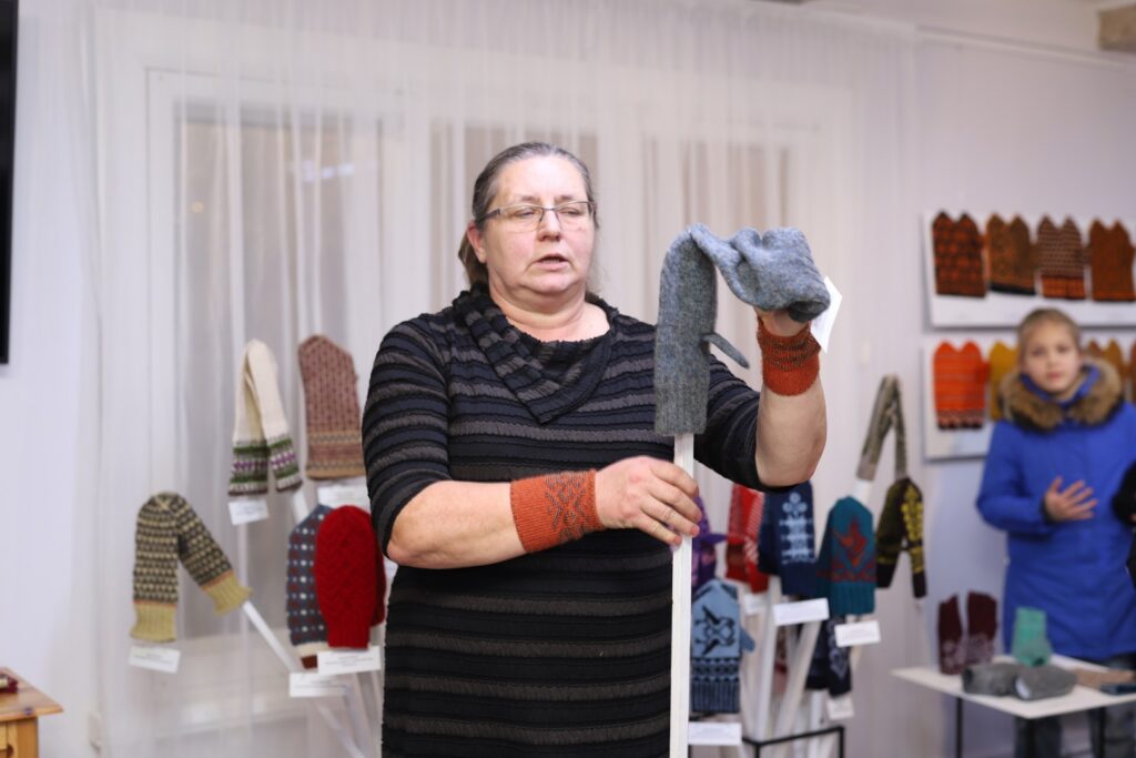 Rankas kultūras nama rokdarbu kopas “Rankas bize” vadītāja Inga Freimane klātesošajiem izstādē pastāstīja sirsnīgu stāstiņu par kopas dalībnieces rancēnietes Ineses Rusovas adītajiem cimdiem. Viņa ada cimdus par godu savai mammai. “Ineses tēva darba cimdi. Cimdi nebija nopērkami katrā bodē, un adīja paši. Inesi cimdus mācīja adīt mamma. Un Ineses adītie cimdi ir veltījums savai mammai,” teica Inga.