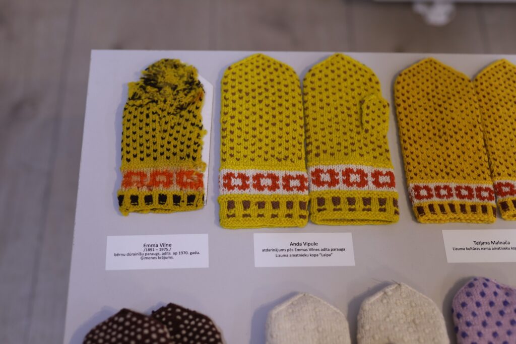 Savukārt pati Inese “Dzirkstelei” stāsta, ka viņa ada cimdus tā, kā savulaik adīja viņas mamma. Mammai bijuši savi raksti, kurus arī pamainīja. “Adām cimdus, lai šīs senās prasmes un mūsu mantojums nepazustu, bet dzīvotu tālāk no paaudzes paaudzē. Mana mamma lepni var noskatīties no mākoņa maliņas, ka viņas mācītās prasmes joprojām saglabātas. Ar viņas iemācīto dzīves gudrību nu jau varam lepoties vairākās paaudzēs. Izstādē cimdu ir tik daudz un tik dažādi, ka savējos uzreiz ir grūti pamanīt,” smaidot saka Inese.