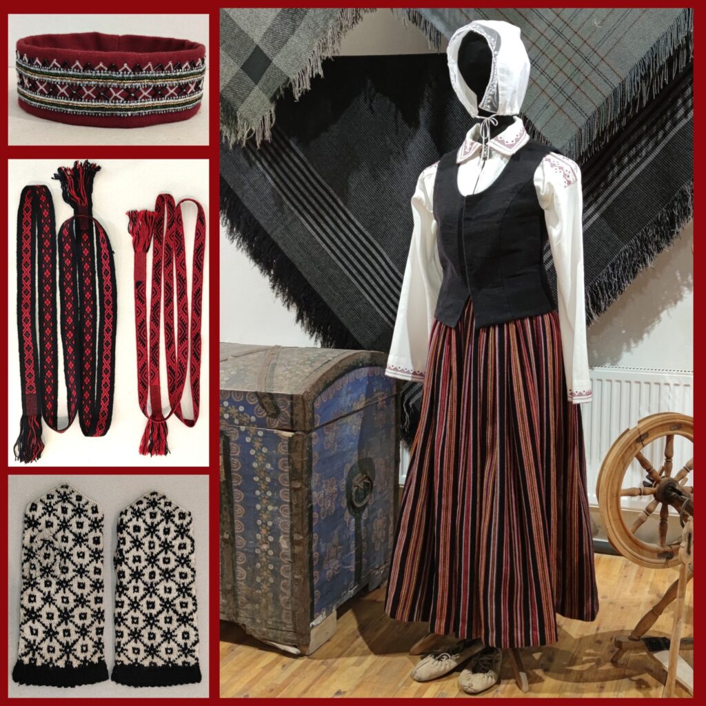 Gulbenes novada vēstures un mākslas muzeja Klētī var aplūkot Vidzemes tradicionālo apģērbu, villaines un šatiera segas (labots)