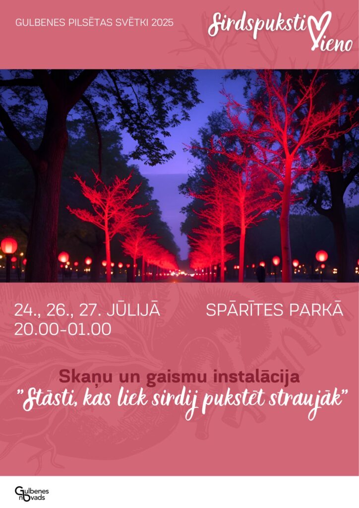 20.00-01.00 – skaņu un gaismu instalācija “Stāsti, kas liek sirdij pukstēt straujāk”.