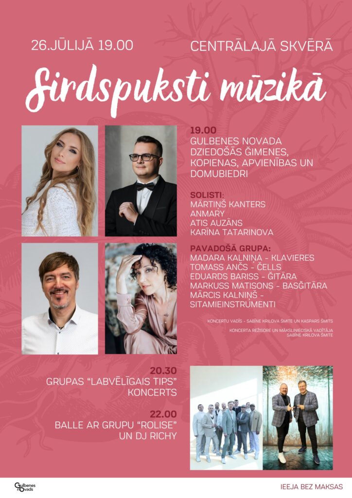 19.00 – novada lielkoncerts “Sirdspuksti mūzikā”.