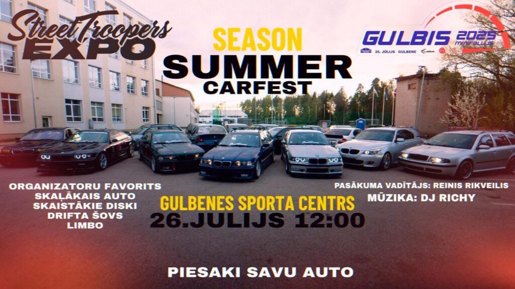 12.00 – minirallija “Gulbis” atklāšana un “Street Troopers” drifta paraugdemonstrējumi.