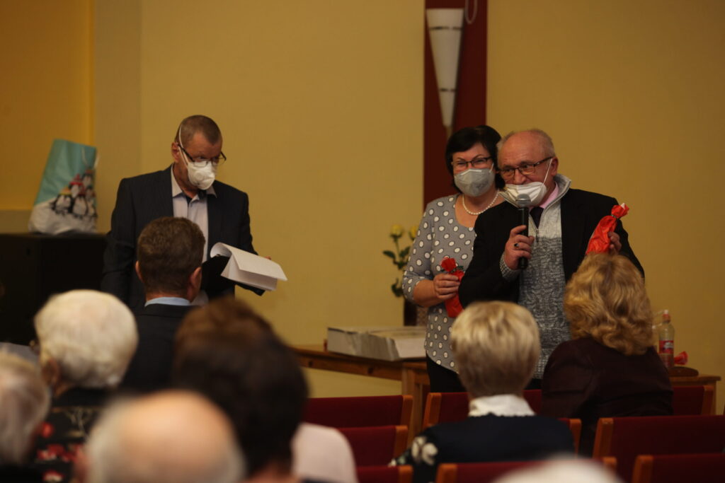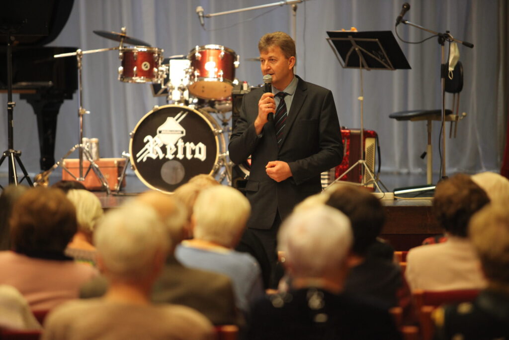 Pasākumā kultūras centrā 21.decembrī sveica seniorus, gadumiju gaidot, un veselību vēlēja novada domes priekšsēdētājs Andis Caunītis un viņa vietniece Guna Švika. Svinīgās runas teica pensionāru divu biedrību vadītāji, labvēļi.