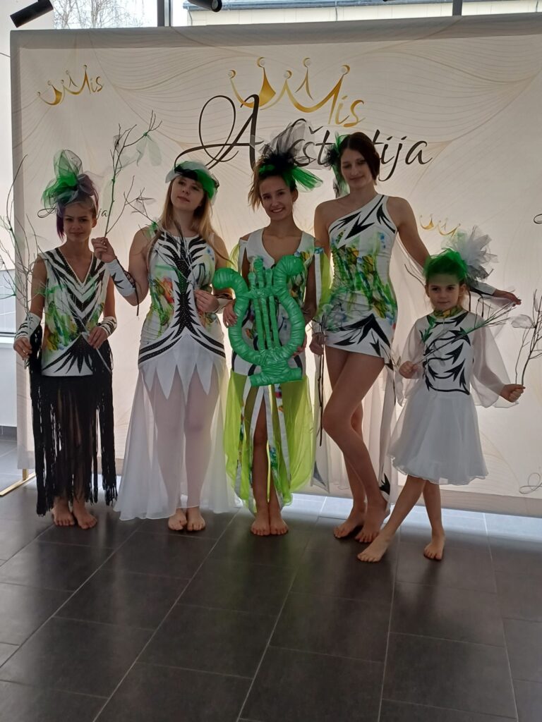 “Par kolekciju “Grieķijas motīvi” ieguvām 1.vietu un par kolekciju “Meža fantāzijas” 2.vietu. Šīs kolekcijas mums izveidoja tērpu māksliniece Kerija no Rīgas. Kopā tērpu kolekciju konkursā tika izrādītas 20 kolekcijas. Saistībā ar mūsu tērpu kolekcijām nominācija “Miss grācija” tika piešķirta Amandai Vebruālei un “Topmodele” Alisei Dārziņai,” stāsta I.Buliņa.