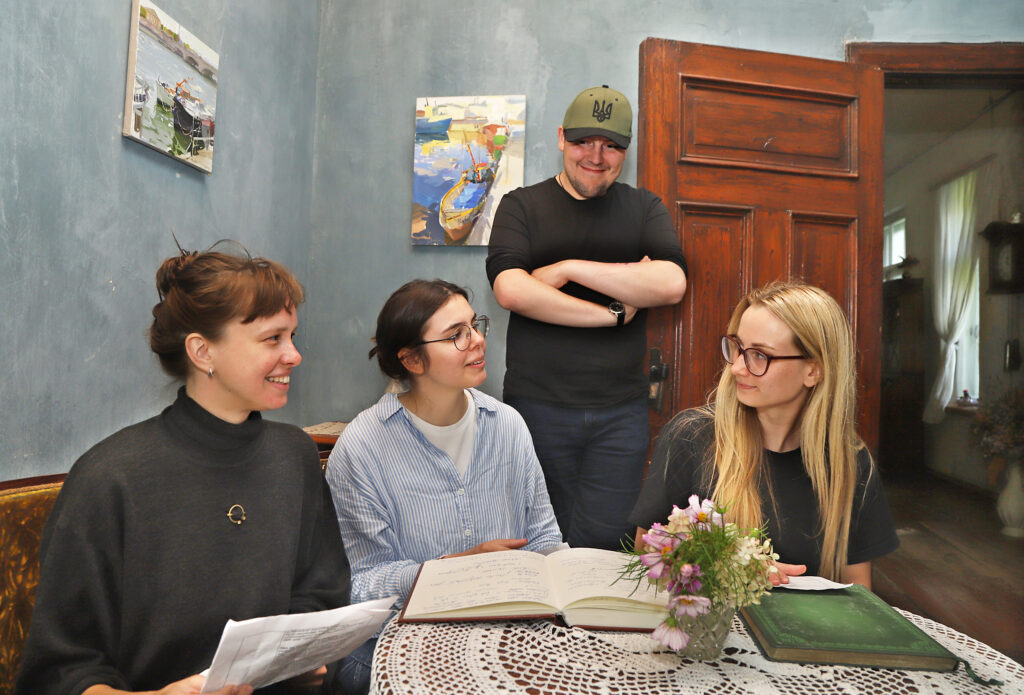 STĀMERIENAS pagasts ar diviem ciemiem kā divām republikām, vēsturiskais konteksts un šodiena, cilvēku dzīvesstāsti un iedzīvotāju kopienu intereses – tas viss interesē jaunos sociologus un dramaturgus. Šovasar viņi apmetušies Stāmerienas pilī, lai interesētos, pētītu un pēc tam iespaidus pārvēstu mākslā. Attēlā: projekta dalībnieki Elza Vildaus (no kreisās), Lote Katrīna Cērpa, Didzis Ruicēns un Ance Kristāla. FOTO: GATIS BOGDANOVS