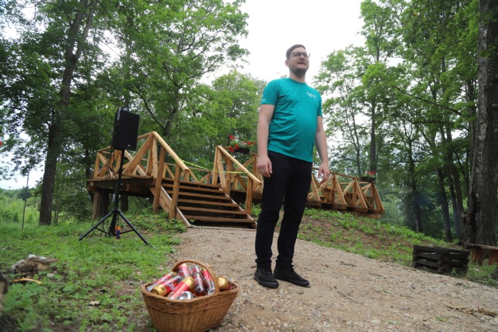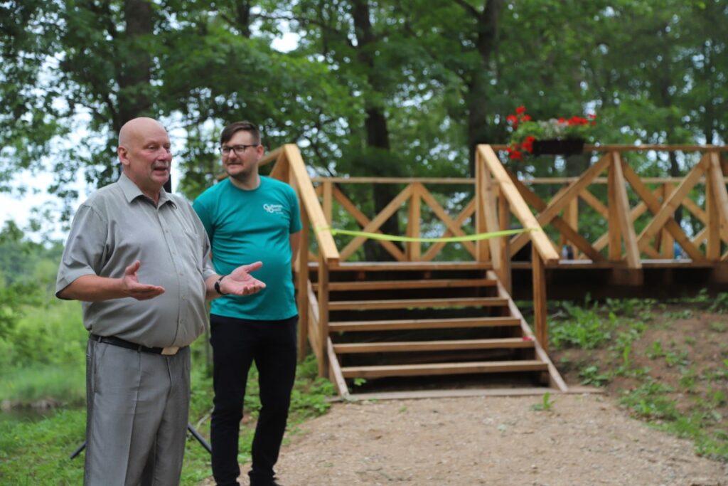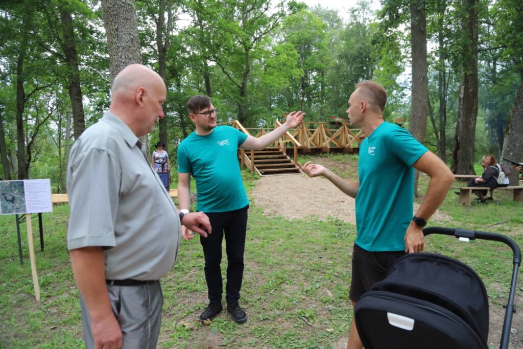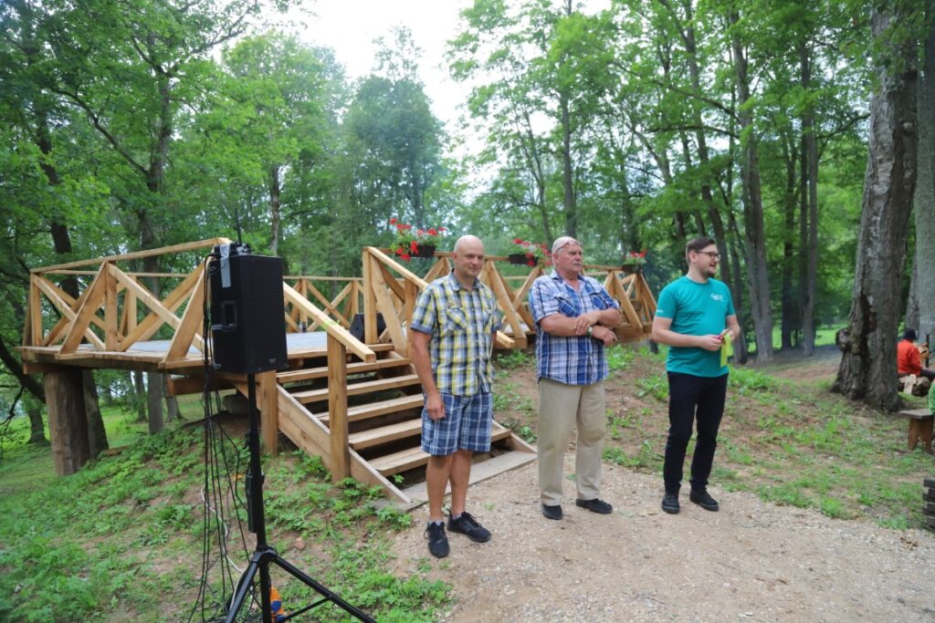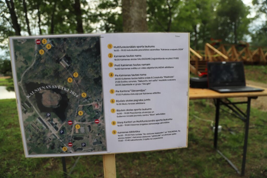 Pēc kopēja foto pie jaunatklātās zīmes klātesošie devās uz nākamā objekta atklāšanu, kas atrodas gandrīz iepretim Kalnienas muižai. Virs vecā muižas pagraba tagad slejas skatu platforma, kas izgatavota pašu kalnēniešu rokām.
