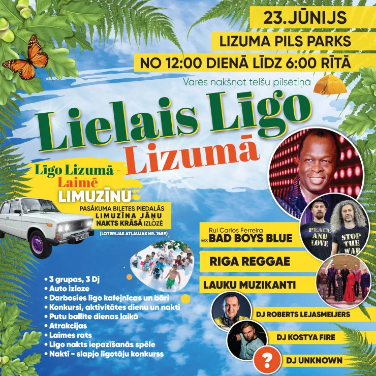 Kāds festivāla viesis dosies mājās ar “limuzīnu Jāņu nakts krāsā”, jo naktī tiks izlozēta ikoniskā automašīna “VAZ” ar derīgu tehnisko apskati, gatava lietošanai, kādā ļoti īpašā krāsā un “Lielā Līgo Lizumā” tematikā!
