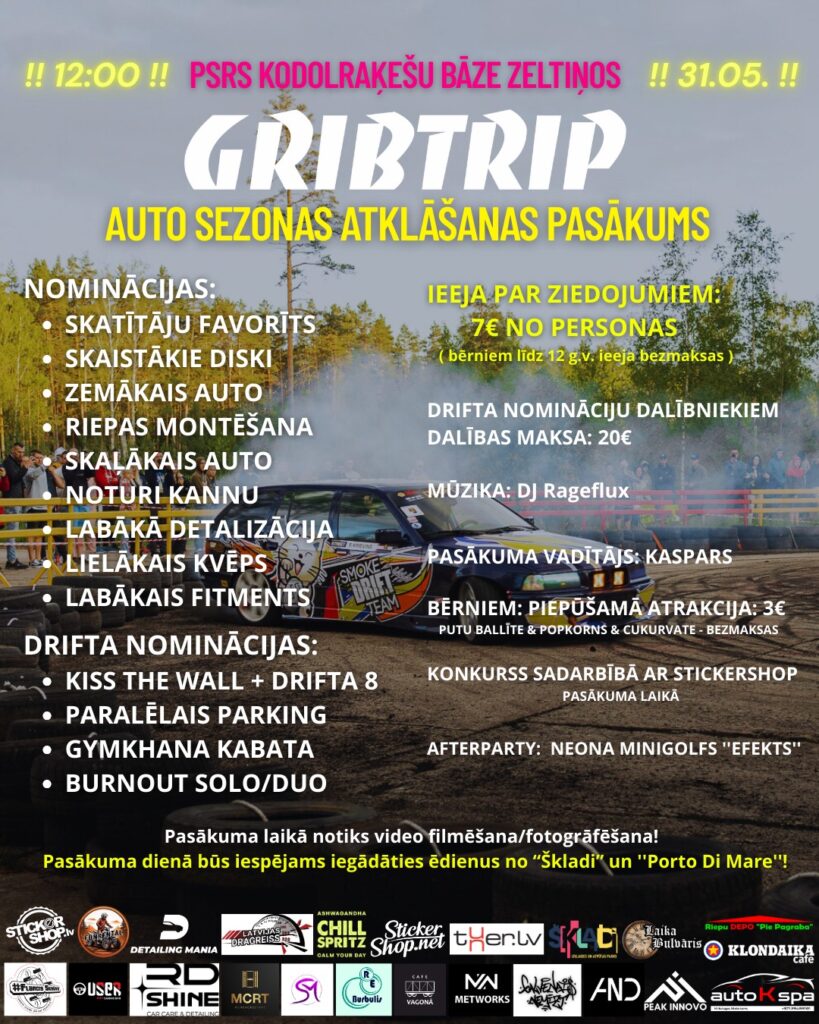 … un, iespējams, saņemsi uz “Gribtrip” auto sezonas atklāšanas pasākumu, kas notiks 31. maijā pulksten 12.00 Zeltiņos.