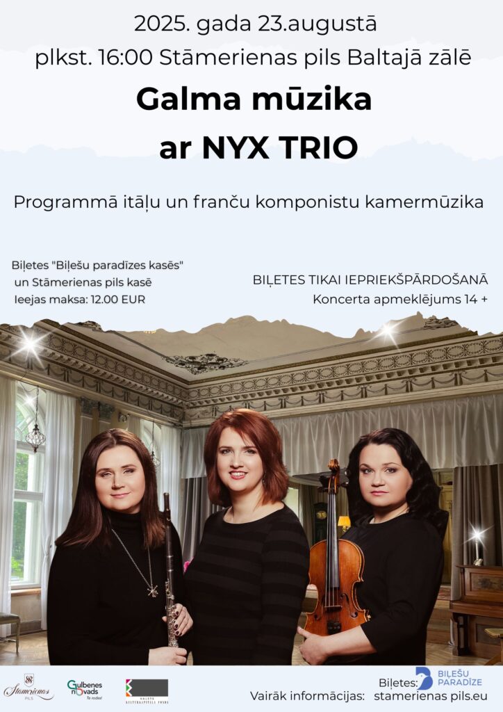 KONKURSS: Stāmerienas pilī - "Nyx Trio" koncerts "Galma mūzika"