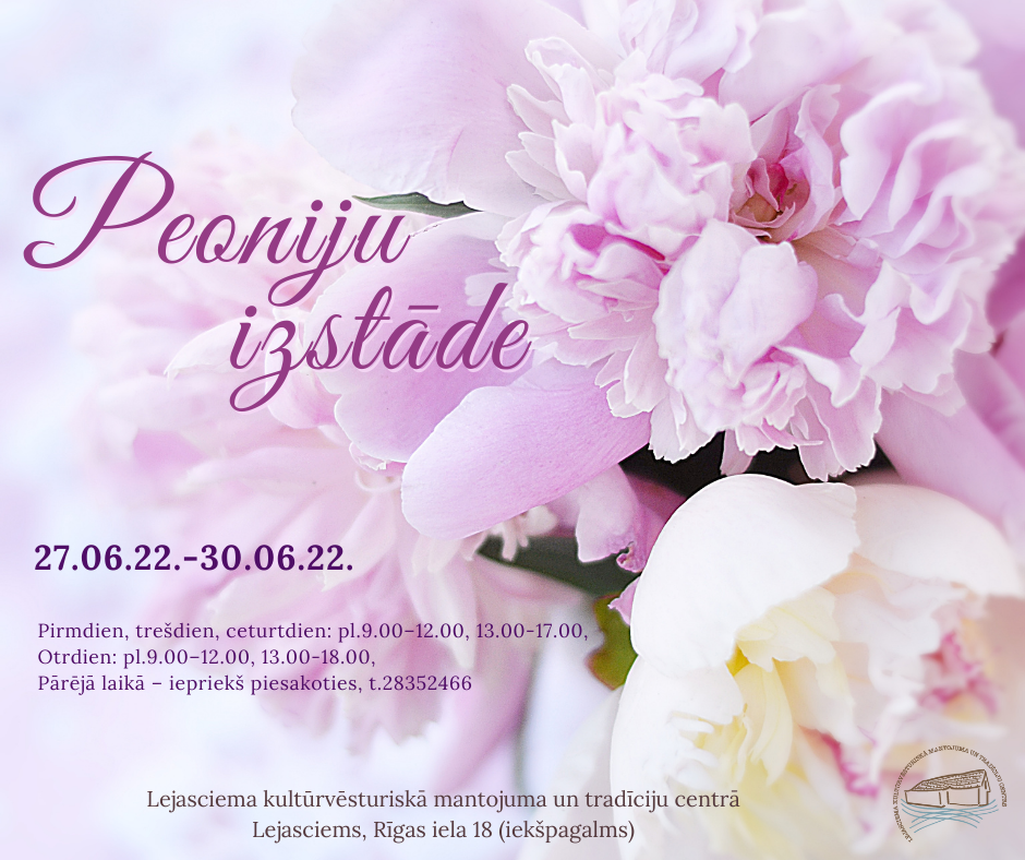 Lejasciema kultūrvēsturiskā mantojuma un tradīciju centrā šodien ir skatāmas 40 dažādas peonijas no Gunas Jundzes kolekcijas. “Par tālāko, grūti spriest. Noteikti kaut kas novītīs, bet ļoti ceru, ka būs papildinājums no citiem peoniju audzētājiem un līdz 30. jūnijam būs, ko skatīt,” saka Lejasciema kultūrvēsturiskā mantojuma un tradīciju centra izglītojošā darba un daba ar apmeklētājiem vadītāja Dana Puidze.