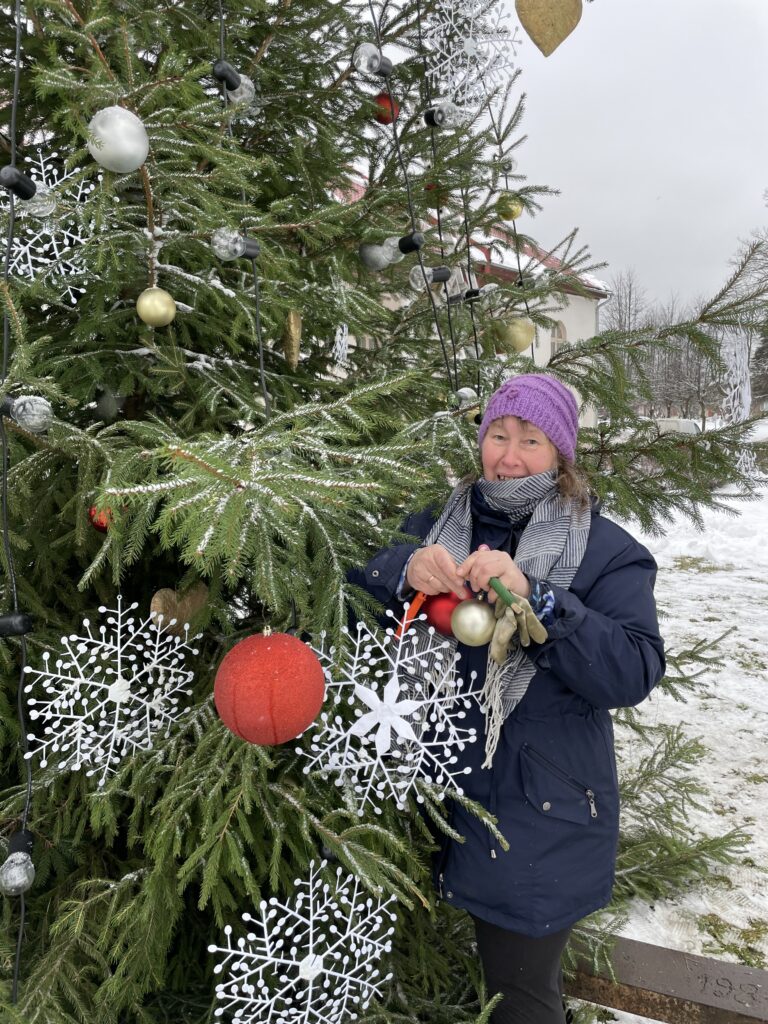 Šim skaistumam tapt ir palīdzējusi lizumniete Līga Ozoliņa. Viņa veidojusi rotājumus – zvaigznes. Viņa arī sakārtojusi egli, ieģērbjot svētku rotā. Kā cilvēku, kurš ar sirdi un dvēseli iesaistās pagasta kultūras dzīves veidošanā, Līgu raksturo Lizuma kultūras nama vadītāja Elita Dūte. Katru dienu viņas darbojas kopā arī ikdienā. Līga nākot kā brīvprātīgā, jo vienkārši citādāk nevar.